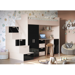 Poschodová posteľ PARADISE 4S Kašmír Čierna Lesk
