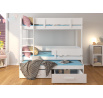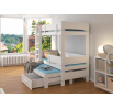 Poschodová 3-lôžková posteľ ETAPO je skvelý nápad na úsporu miesta v malej detskej izbe. Nábytok obsahuje schodíkový rebrík a dve priestranné a funkčné zásuvky na posteľnú bielizeň. Navyše na dvoch úrovniach boli namontované zábradlia zvyšujúce bezpečnosť počas spánku. Spolu s posteľou obdržíte sadu troch penových matracov s hrúbkou 8 cm.