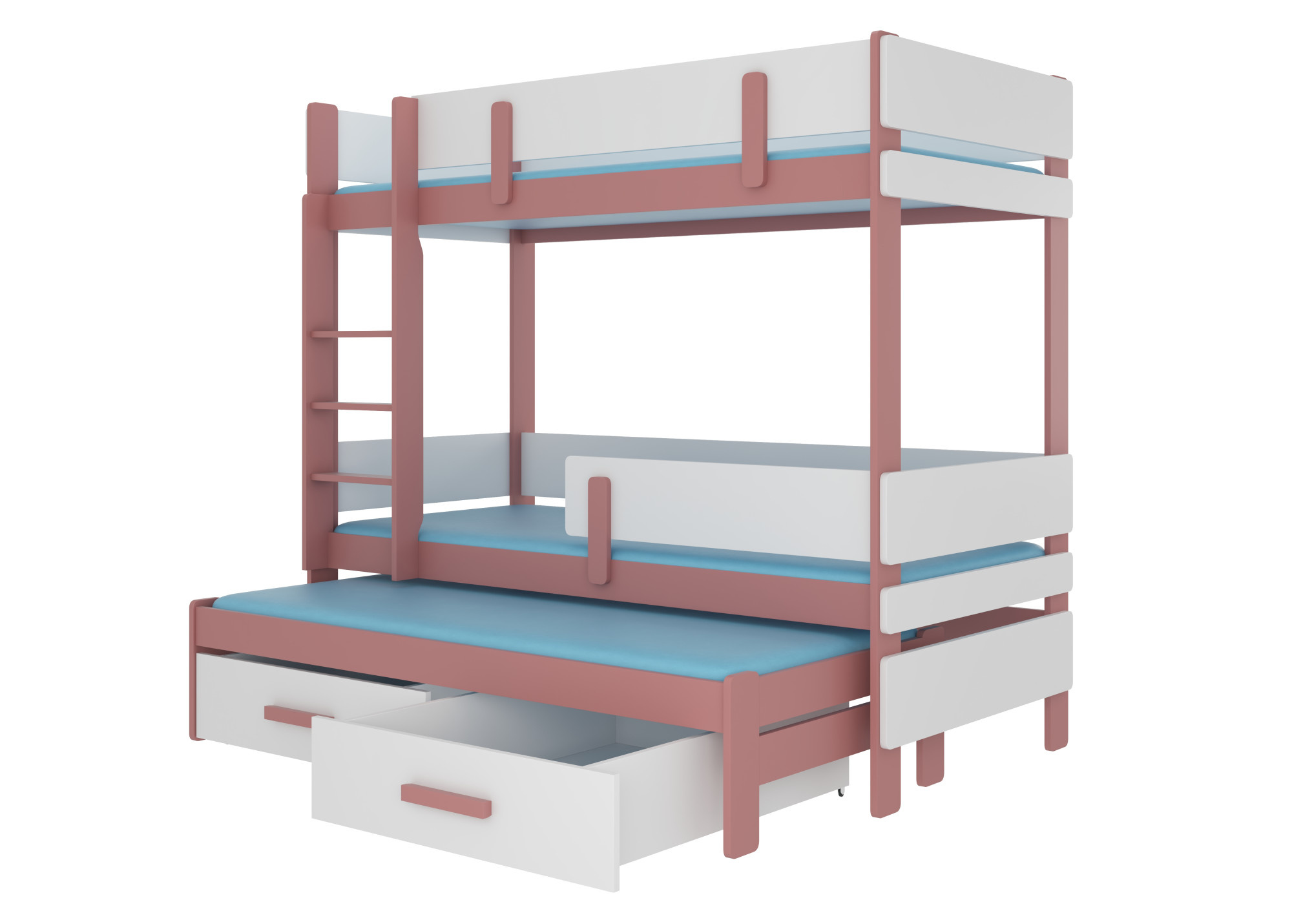 Trojposchodová posteľ s matracmi ETAPO 180x80 Ružová+Biela