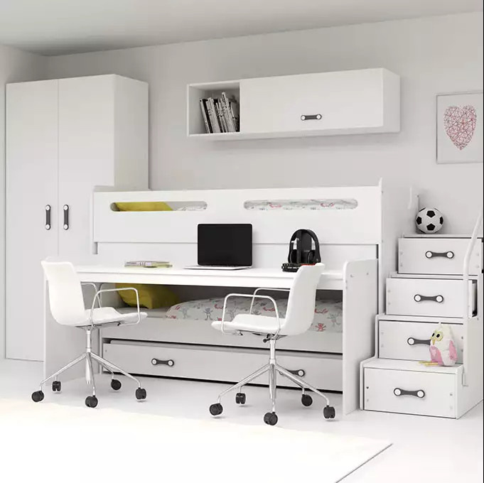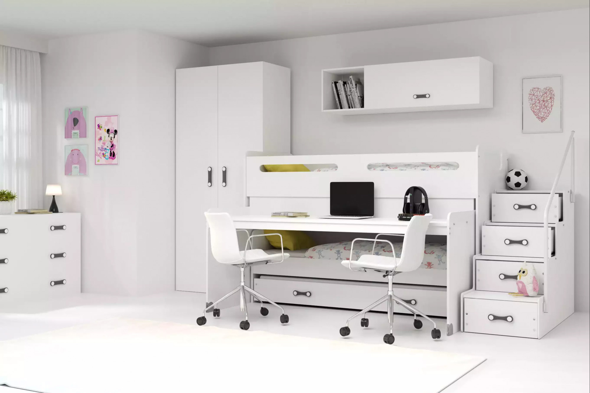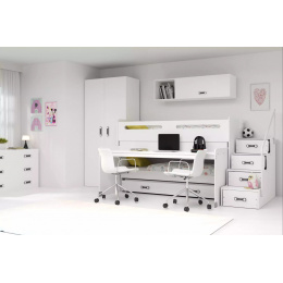 Poschodová posteľ s písacím stolom MAX 1 Biela, 3 miestna, 80 X 200