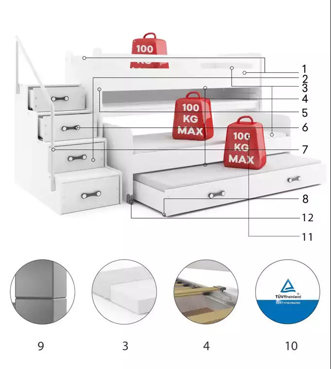 - Certifikovaná posteľ - kvalita a bezpečnosť podľa noriem TUV.