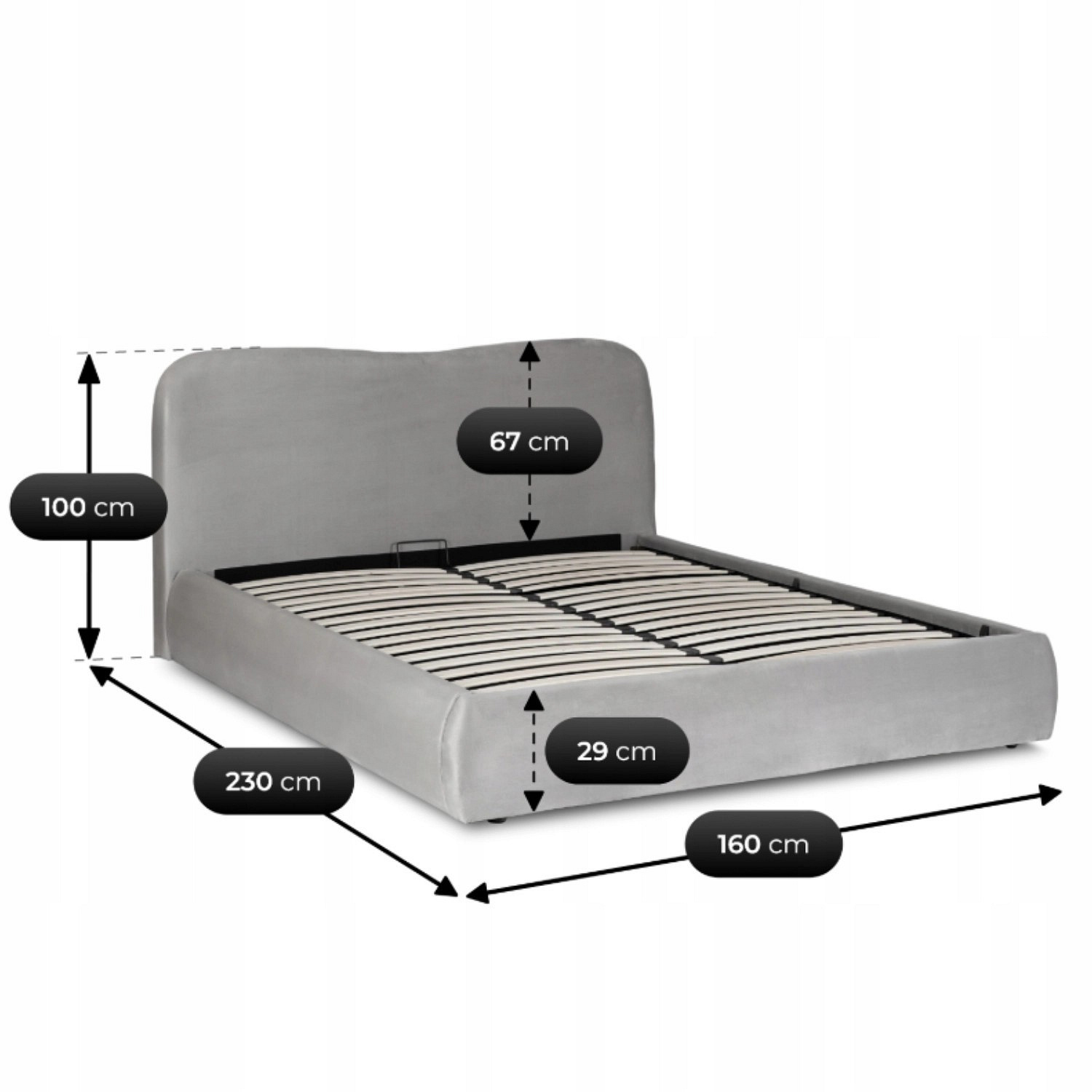 Posteľ 140x200 BRISTOL s Úložným Priestorom Sivý Zamat