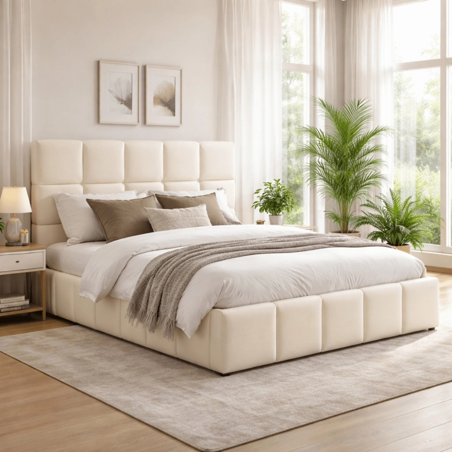 Posteľ 140x200 MURCJA s Úložným Priestorom Krémová Zamatová