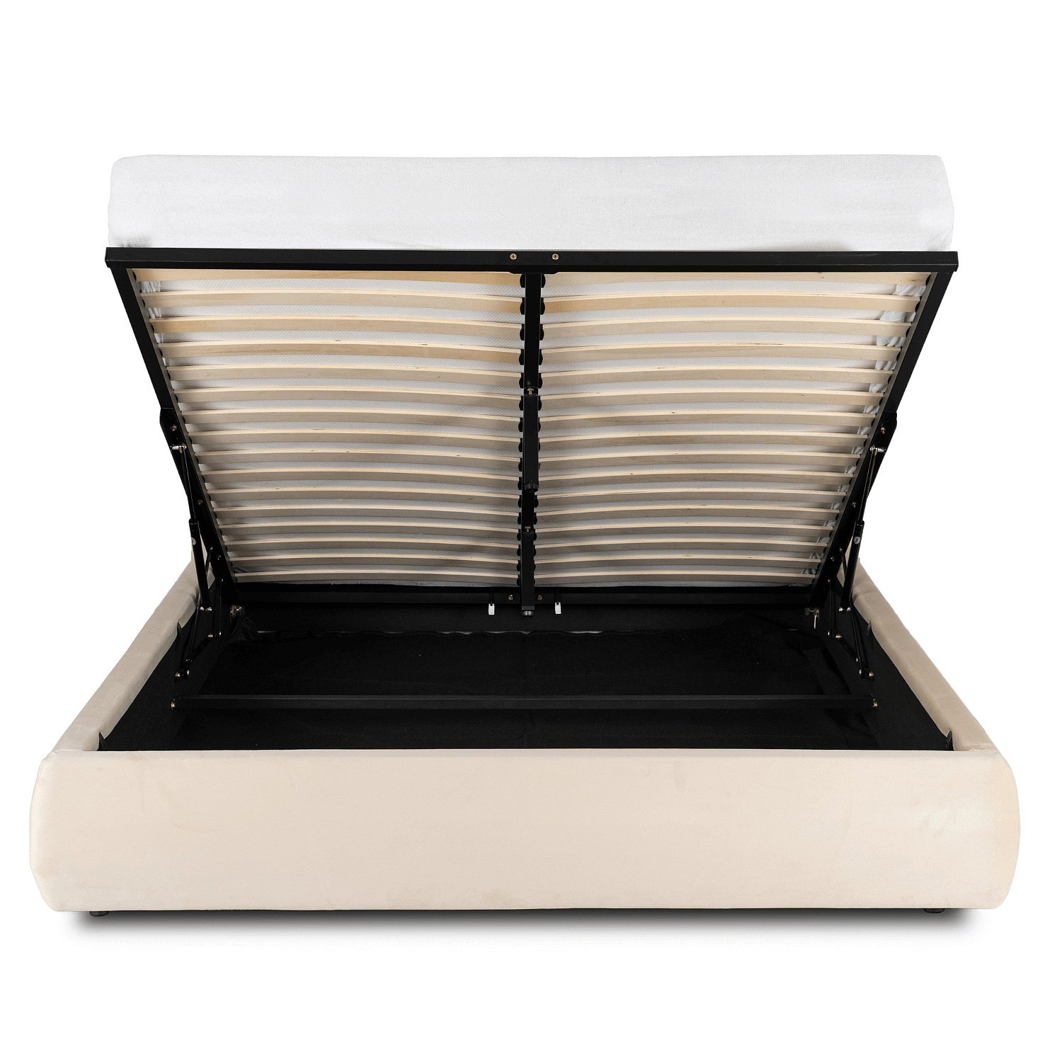 Posteľ 160x200 HAGA s Úložným Priestorom Krémová Zamatová