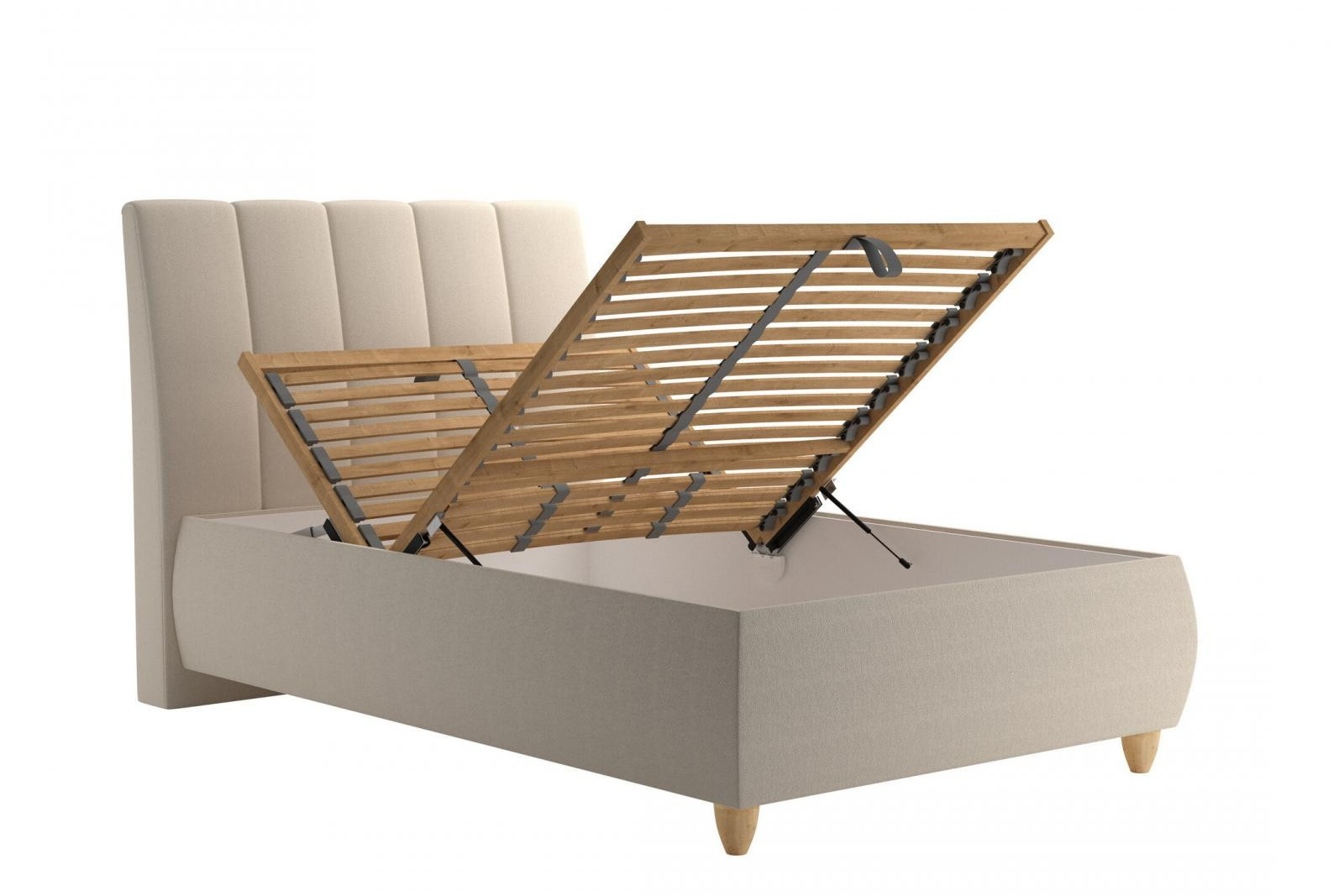 Úložný priestor postele sa otvára pomocou plynových piestov na nohách postele.
