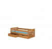 Jednolôžková posteľ BEMMA s jednoduchým tvarom sa skvele hodí do interiéru izby chlapca alebo dievčaťa. Výhodou je ochranná zábrana zabezpečujúca bezpečnosť počas spánku a priestranné a funkčné zásuvky na posteľnú bielizeň. Súčasťou sady je aj odolný rám vyrobený z pevných lamiel. Matrac nie je súčasťou postele.