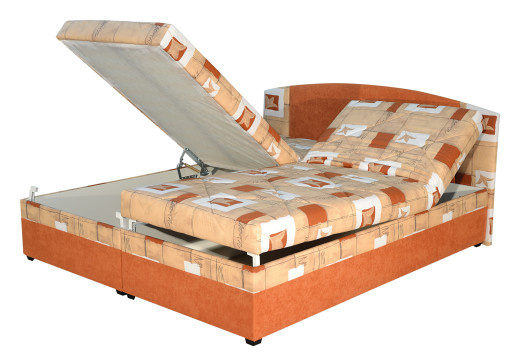 Posteľ Betty je klasická celočalúnená manželská posteľ s pohodlnou výškou na spanie 52 cm. Posteľ je vybavená polohovacím roštom, na ktorom je pevne uložený elastický matrac z PUR peny. Špeciálne štruktúrovaný povrch jadra matraca zaisťuje dobré prispôsobenie sa telu a optimálne prúdenie vzduchu, čo je veľmi dôležité na dosiahnutie správnej spánkovej klímy.. Mriežku možno umiestniť pod hlavu (5 polôh) a pod nohy (1 poloha). Samozrejmosťou je aj veľký úložný priestor na lôžkoviny, ktorý je prístupný od nôh.plocha na spanie je 180x200 cm, výška matraca je približne 14 cm, odporúčaná nosnosť je 105 kg. Posteľ je k dispozícii aj vo veľkosti 160x200 cm. V cene postele NIE sú zahrnuté vankúše.