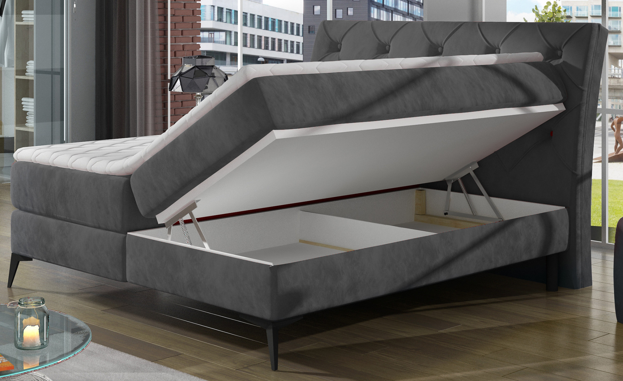 Moderná posteľ - boxspring LEOŠ vás na prvý pohľad zaujme svojím tvarom, vysokým čelom a dizajnom.