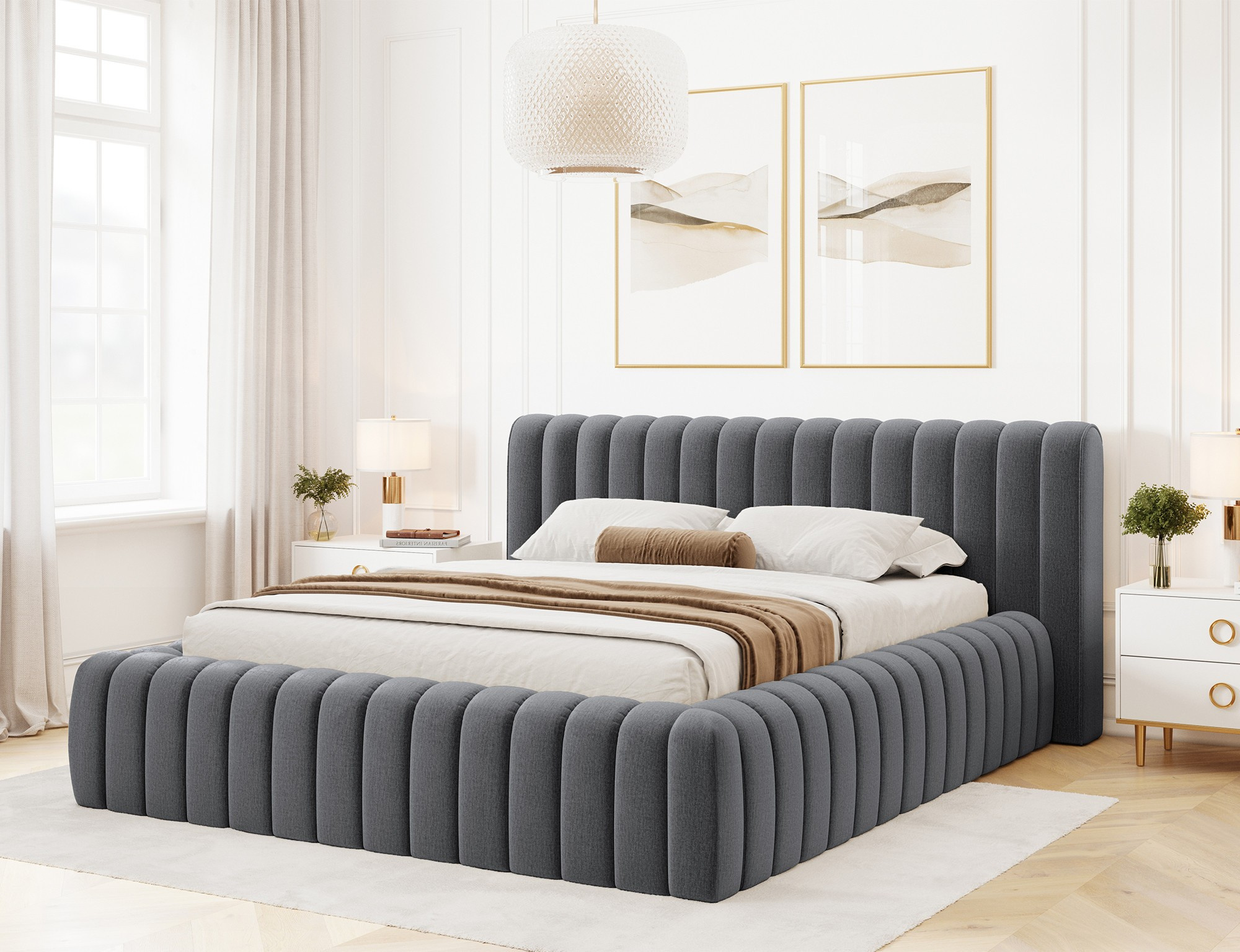 Posteľ Carilla je moderný a elegantný kus nábytku dostupný v troch veľkostiach: 140x200 cm, 160x200 cm a 180x200 cm, ktorý dokonale ladí so súčasnými trendmi v interiéri. Jeho pohodlie je zabezpečené vysoko kvalitnou polyuretánovou penou vo výplni rámu a operadla—T2130 a T2315—ktorá poskytuje ako odolnosť, tak útulnosť. Jeho robustná konštrukcia je podporená kovovým rámom s 36 lamelami, čo zaisťuje vynikajúcu oporu matraca a pokojný spánok. Dizajn je dokončený čiernym klzákom, ktorý zvyšuje stabilitu aj estetiku.