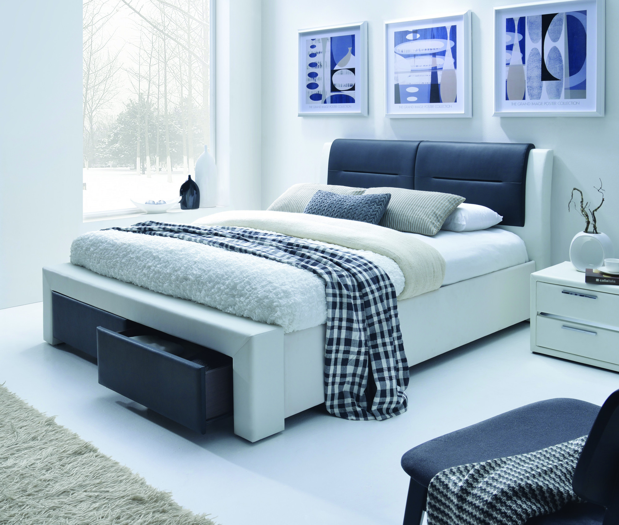 rozmery: 152/225/99/39 cm, posteľ so zásuvkami materiál: ekokoža, farba: biela a čierna