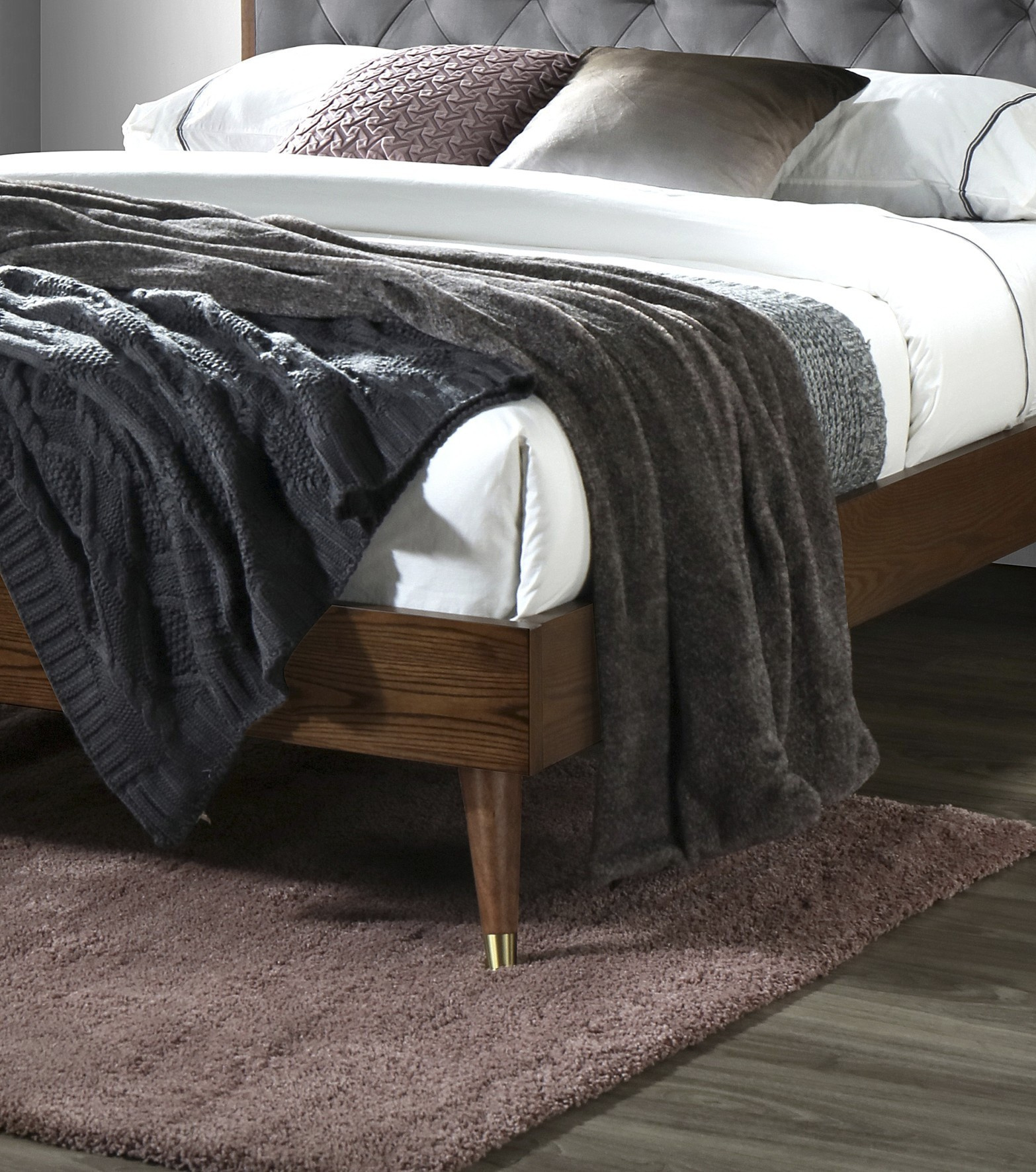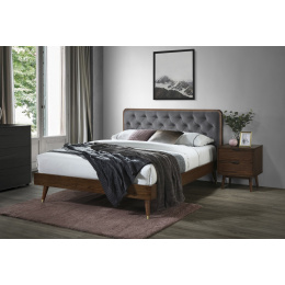 materiál: tkanina / masívne drevo - kaučukové, farba: tkanina - popolavá, drevo - orech, * posteľ bez matraca, voliteľne matrac POLARIS 160