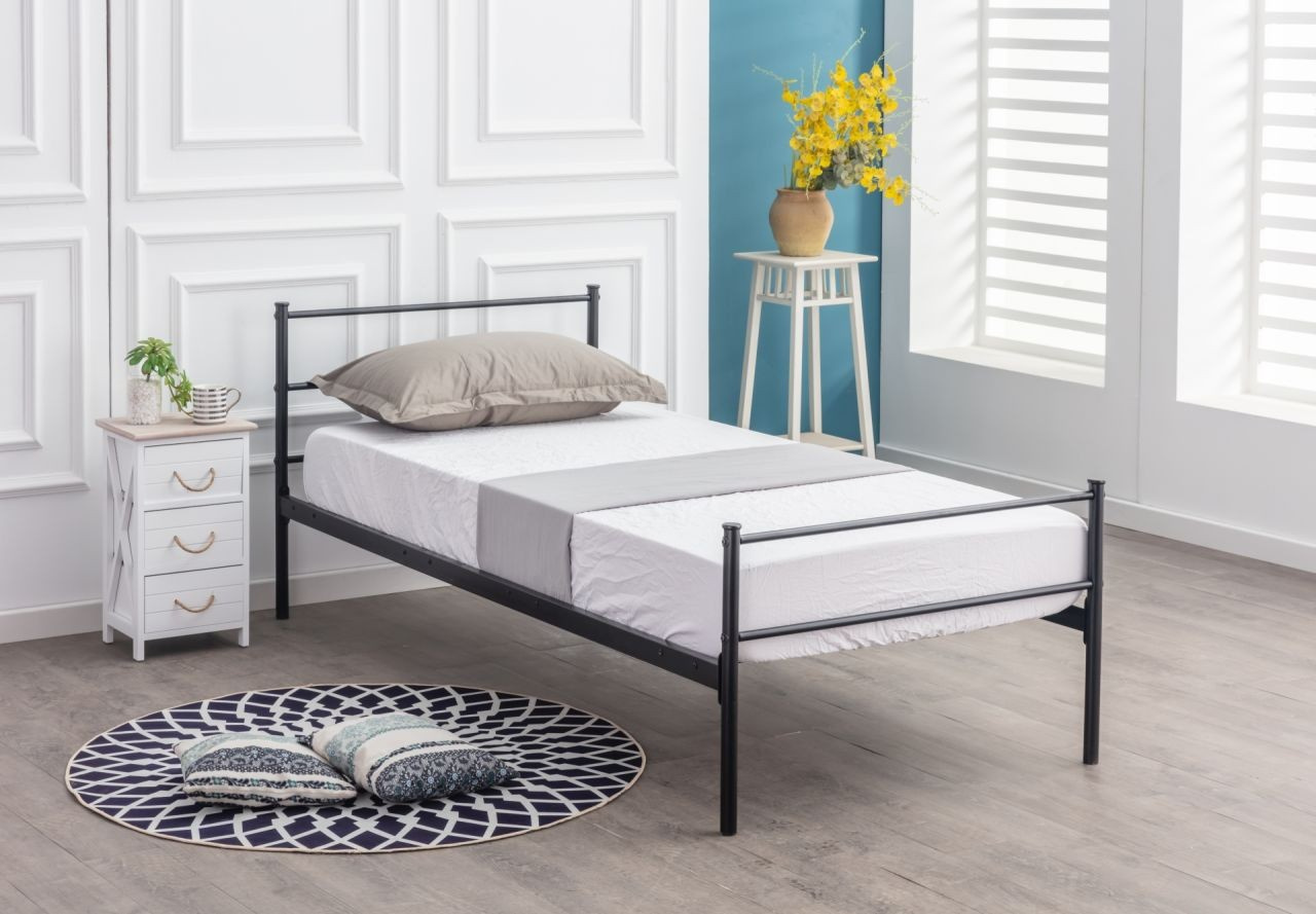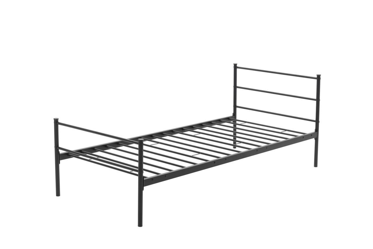 Kovová posteľ 90/200 Práškové lakovanie, čierna farba, Čelo postele vo výške 81 cm Celková šírka: 96,5 cm Celková dĺžka: 205 cm Výška, od ktorej začína rošt: 32 cm