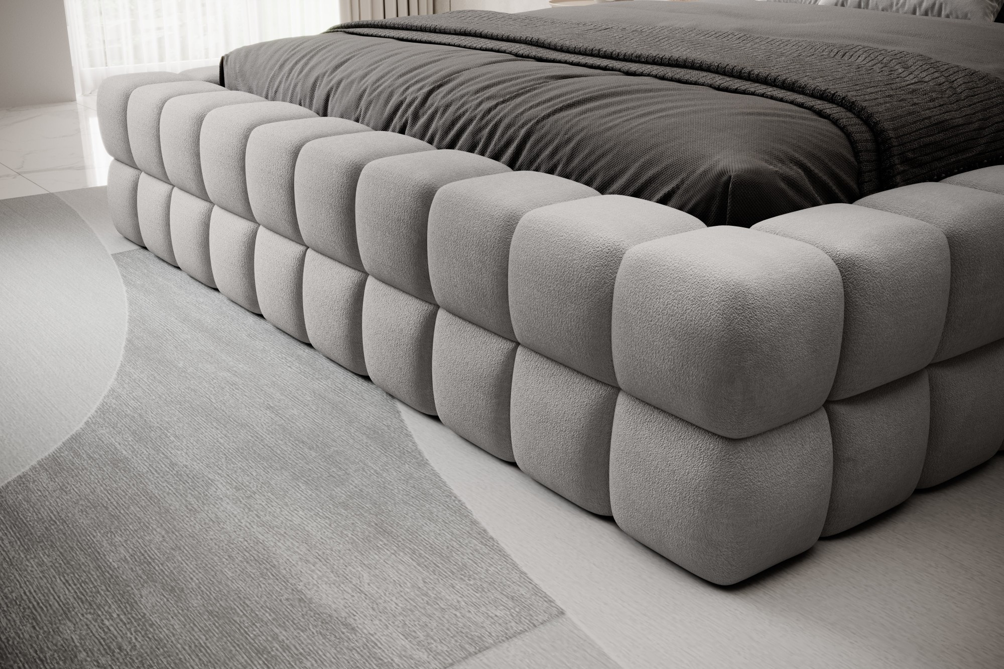 Posteľ Dizzle vo verzii so šírkou 140 cm je ideálnym riešením pre tých, ktorí si cenia kompaktné rozmery, bez toho, aby museli zľaviť z pohodlia pri spánku. Táto posteľ kombinuje moderný dizajn s funkčnosťou. Používa penu T2130, ktorá zabezpečuje pružnosť a pohodlie. So tromi rôznymi možnosťami šírky poskytuje voľba 140 cm optimálny priestor na relaxáciu. Dĺžka postele je 225 cm a jej impozantná výška 104 cm jej dodáva elegantný vzhľad.Výška sedadla je 42 cm; nezabudnite však pridať výšku matraca, aby ste dosiahli plný komfort pri spánku. Čierne plastové nohy s výškou 2 cm zabezpečujú stabilitu. Kovový rám zaručuje odolnosť konštrukcie a jedna úložná priehradka robí posteľ Dizzle 140 aj praktickým miestom na uloženie ďalších predmetov.S 36 lamelami pre rovnomernú podporu matraca prináša posteľ Dizzle, ktorej tvar pripomína elegantnú kocku, do vašej spálne jedinečný dizajn a pohodlnú relaxáciu.