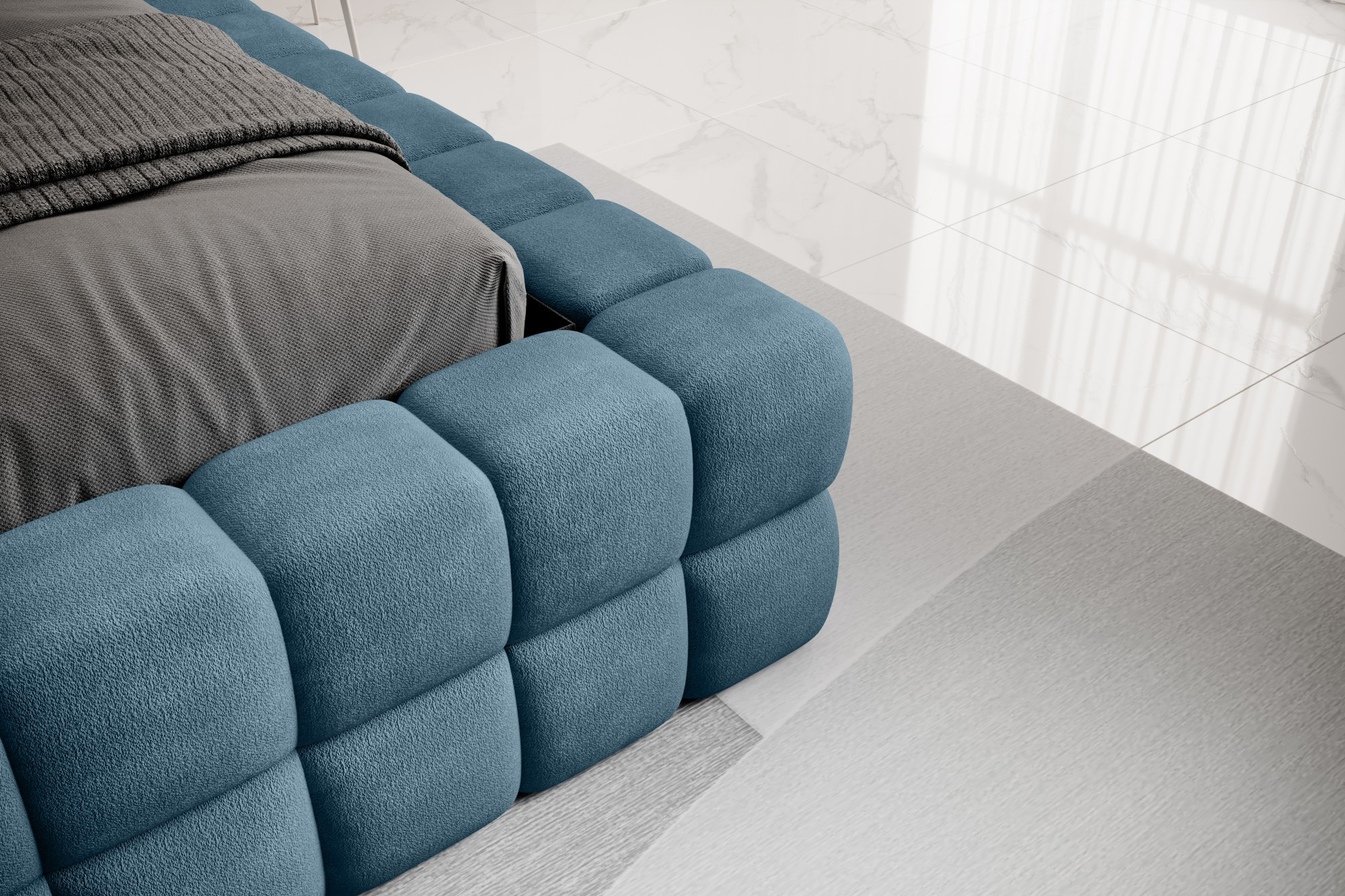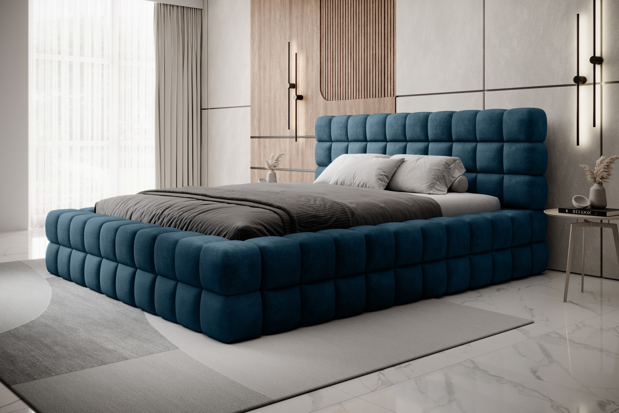 Posteľ Dizzle vo verzii so šírkou 140 cm je ideálnym riešením pre tých, ktorí si cenia kompaktné rozmery, bez toho, aby museli zľaviť z pohodlia pri spánku. Táto posteľ kombinuje moderný dizajn s funkčnosťou. Používa penu T2130, ktorá zabezpečuje pružnosť a pohodlie. So tromi rôznymi možnosťami šírky poskytuje voľba 140 cm optimálny priestor na relaxáciu. Dĺžka postele je 225 cm a jej impozantná výška 104 cm jej dodáva elegantný vzhľad.Výška sedadla je 42 cm; nezabudnite však pridať výšku matraca, aby ste dosiahli plný komfort pri spánku. Čierne plastové nohy s výškou 2 cm zabezpečujú stabilitu. Kovový rám zaručuje odolnosť konštrukcie a jedna úložná priehradka robí posteľ Dizzle 140 aj praktickým miestom na uloženie ďalších predmetov.S 36 lamelami pre rovnomernú podporu matraca prináša posteľ Dizzle, ktorej tvar pripomína elegantnú kocku, do vašej spálne jedinečný dizajn a pohodlnú relaxáciu.
