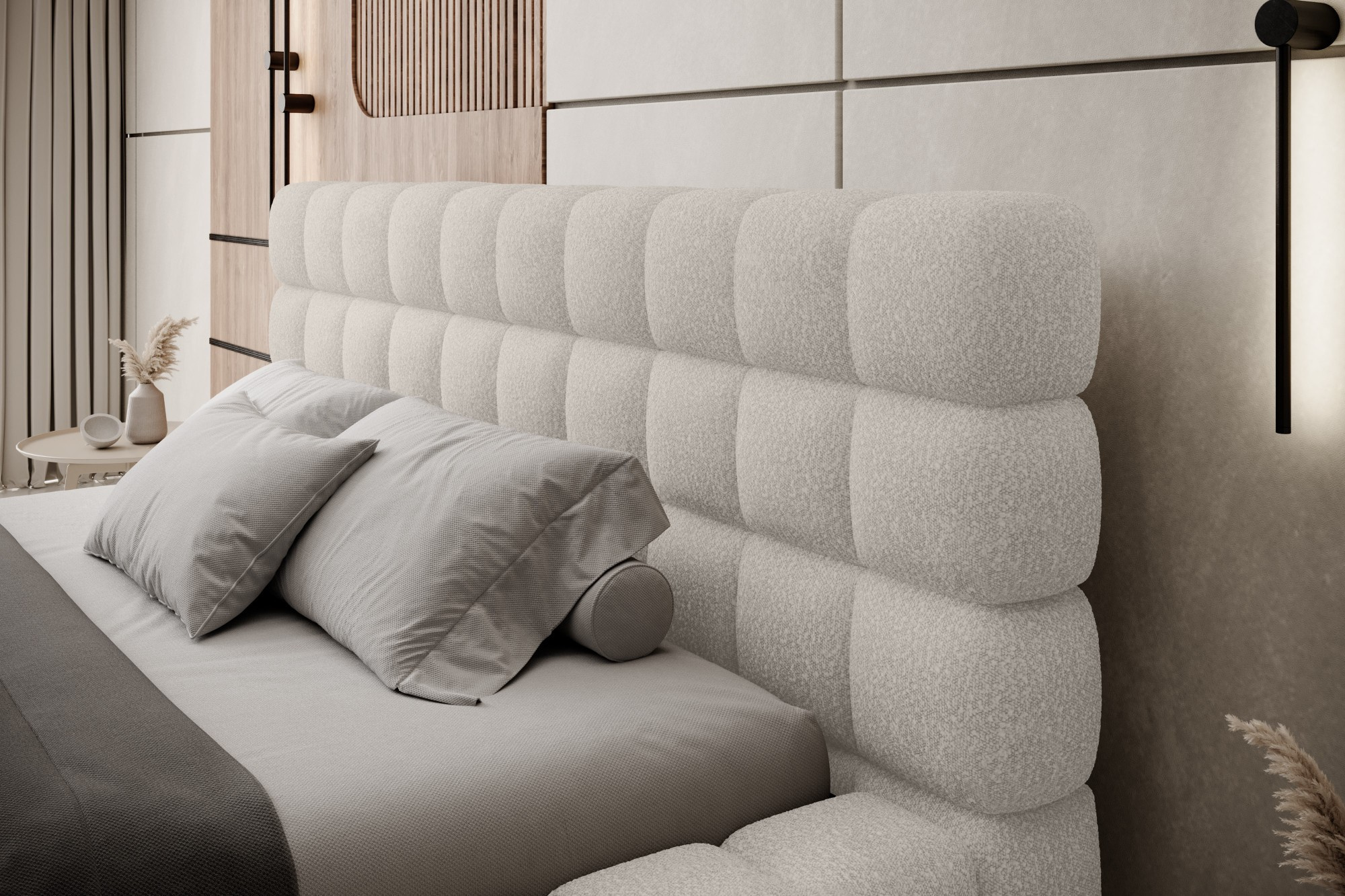 Posteľ Dizzle vo verzii so šírkou 140 cm je ideálnym riešením pre tých, ktorí si cenia kompaktné rozmery, bez toho, aby museli zľaviť z pohodlia pri spánku. Táto posteľ kombinuje moderný dizajn s funkčnosťou. Používa penu T2130, ktorá zabezpečuje pružnosť a pohodlie. So tromi rôznymi možnosťami šírky poskytuje voľba 140 cm optimálny priestor na relaxáciu. Dĺžka postele je 225 cm a jej impozantná výška 104 cm jej dodáva elegantný vzhľad.Výška sedadla je 42 cm; nezabudnite však pridať výšku matraca, aby ste dosiahli plný komfort pri spánku. Čierne plastové nohy s výškou 2 cm zabezpečujú stabilitu. Kovový rám zaručuje odolnosť konštrukcie a jedna úložná priehradka robí posteľ Dizzle 140 aj praktickým miestom na uloženie ďalších predmetov.S 36 lamelami pre rovnomernú podporu matraca prináša posteľ Dizzle, ktorej tvar pripomína elegantnú kocku, do vašej spálne jedinečný dizajn a pohodlnú relaxáciu.
