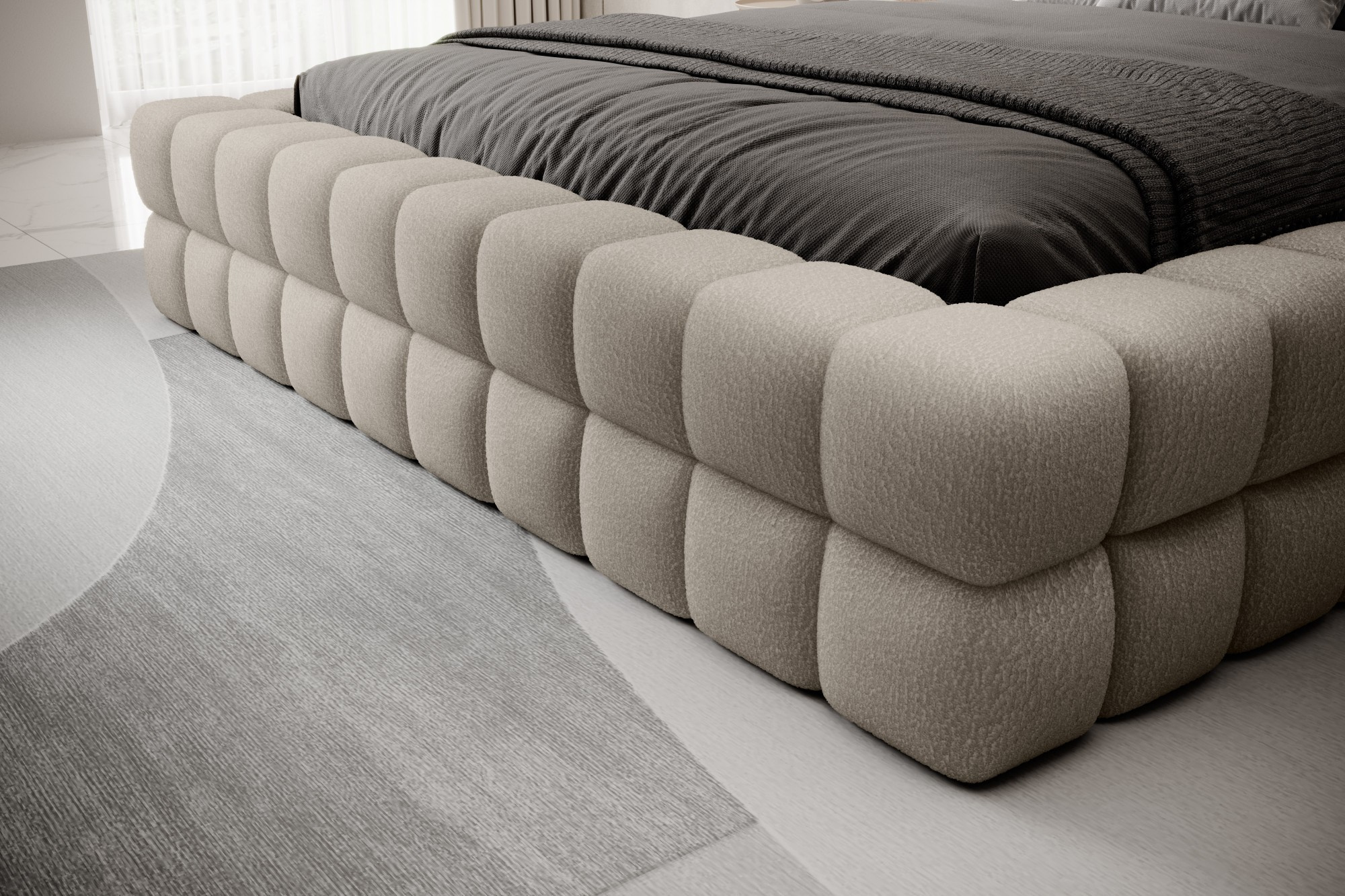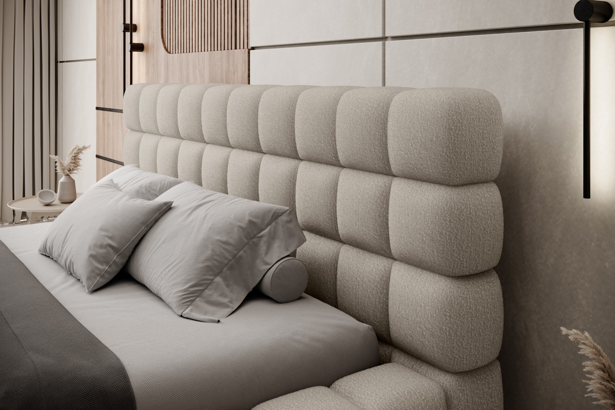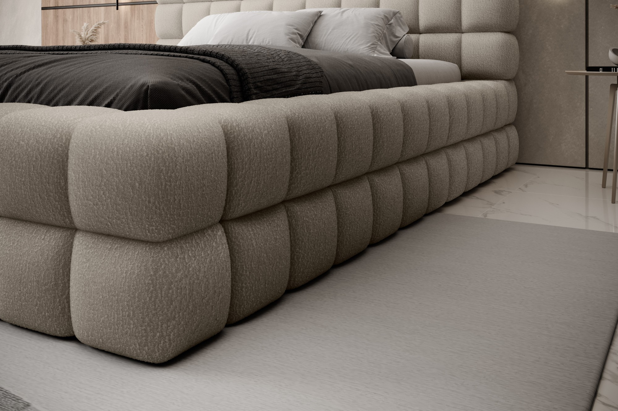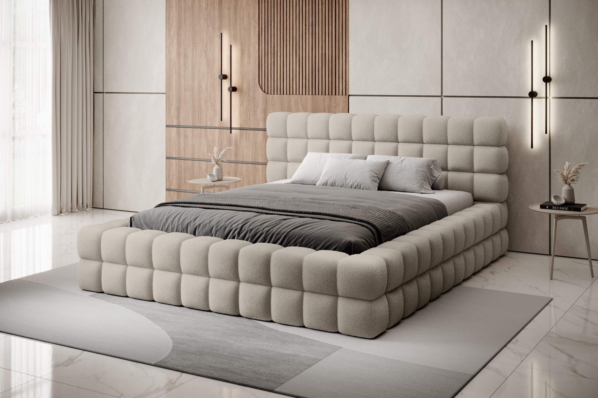 Posteľ Dizzle vo verzii so šírkou 140 cm je ideálnym riešením pre tých, ktorí oceňujú kompaktné rozmery, bez toho aby sa vzdali pohodlia pri spánku. Táto posteľ spája moderný dizajn s funkčnosťou. Používa typ peny T2130, ktorý zabezpečuje pružnosť a pohodlie. S tromi rôznymi variantami šírky ponúka optimálne možnosti relaxácie, najmä pri šírke 140 cm. Dĺžka postele je 225 cm a jej impozantná výška 104 cm jej dodáva elegantný vzhľad.Výška sedadla je 42 cm; majte však na pamäti, že by ste mali pridať výšku matraca, aby ste dosiahli maximálne pohodlie pri spánku. Čierne plastové nohy s výškou 2 cm zabezpečujú stabilitu. Kovový rám zaručuje dlhú životnosť konštrukcie a úložný box robí posteľ Dizzle 140 aj praktickým miestom na uloženie ďalších predmetov.S 36 lamelami pre rovnomernú podporu matraca prináša posteľ Dizzle, ktorej tvar pripomína elegantnú kocku, jedinečný dizajn a pohodlný odpočinok do vašej spálne.