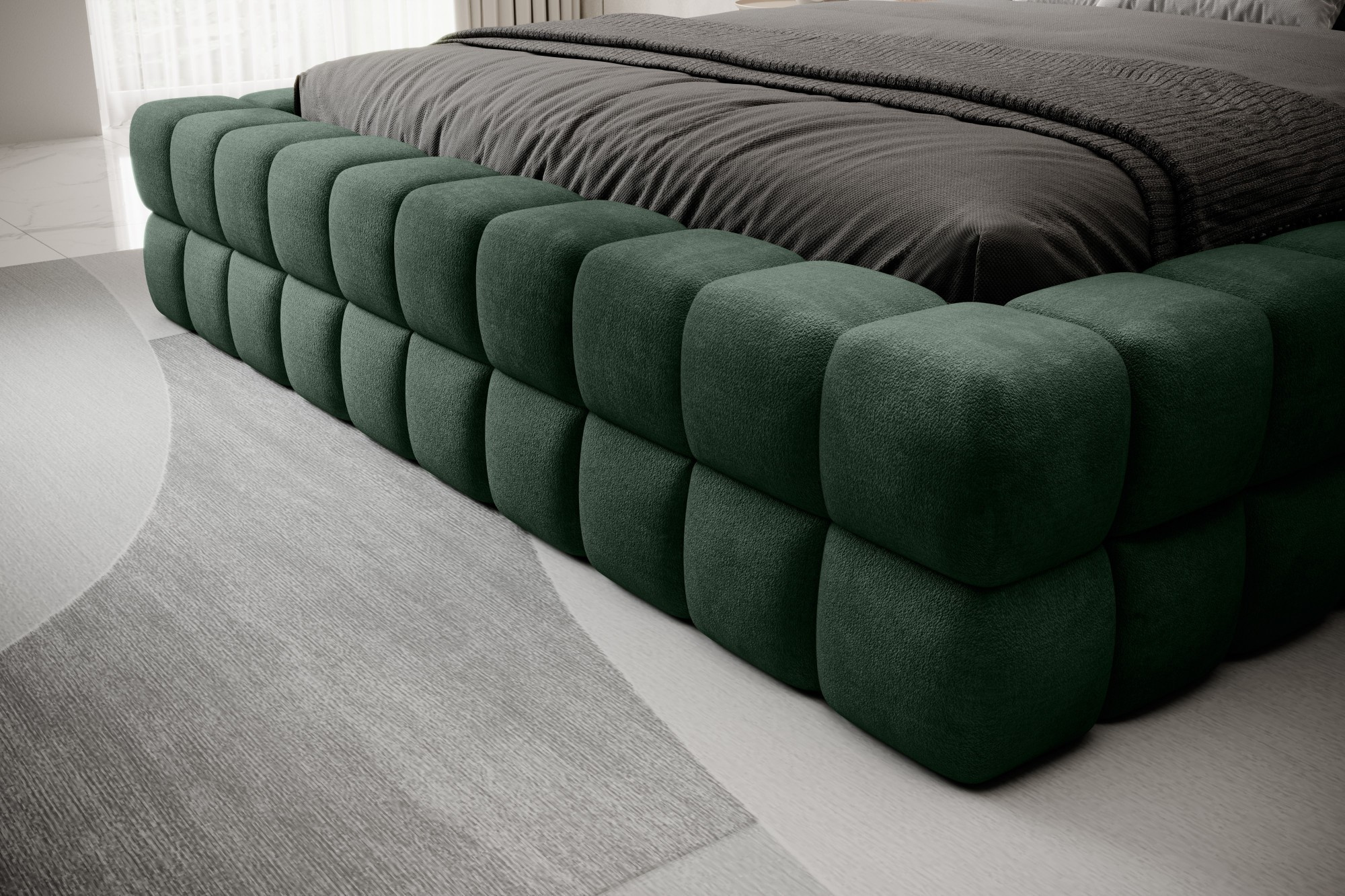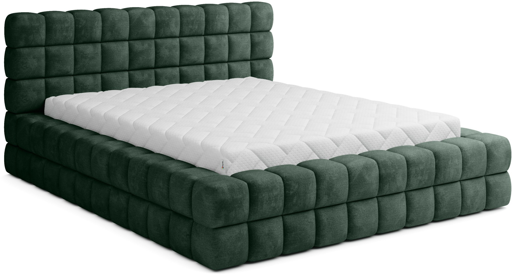 Posteľ Dizzle vo verzii so šírkou 160 cm je ideálnym riešením pre tých, ktorí hľadajú viac priestoru na spanie, bez toho aby museli zľaviť z elegancie a pohodlia. Používa penu T2130, ktorá zabezpečuje pružnosť a jedinečné pohodlie počas spánku. So tromi rôznymi možnosťami šírky je 160 cm ideálnym riešením pre priestranný spánok. Dĺžka postele je 225 cm a jej impozantná výška 104 cm dodáva celej konštrukcii eleganciu.Výška sedadla je 42 cm; odporúča sa však pridať výšku matraca pre dosiahnutie plného komfortu pri spánku. Čierne plastové nohy s výškou 2 cm zabezpečujú stabilitu a ľahký pohyb nábytku. Kovový rám zaručuje odolnosť konštrukcie a jedna úložná priehradka robí posteľ Dizzle praktickým miestom na uloženie ďalších vecí.S 36 lamelami pre rovnomernú podporu matraca prináša posteľ Dizzle, ktorej tvar pripomína elegantnú kocku, do vašej spálne priestranný spánok, štýlový dizajn a pohodlnú relaxáciu.