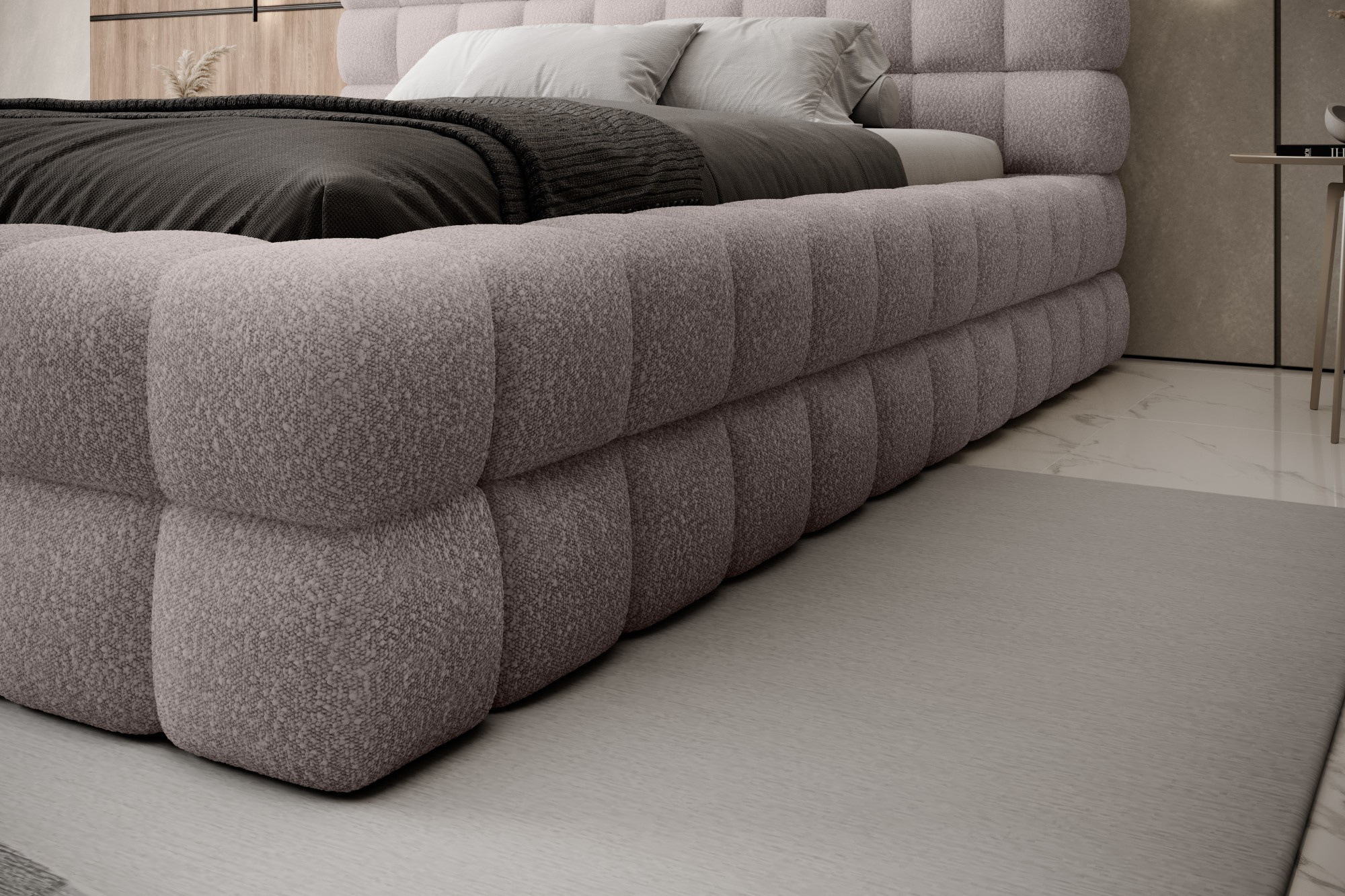 Posteľ Dizzle vo verzii so šírkou 160 cm je ideálnym riešením pre tých, ktorí hľadajú viac priestoru na spanie, bez toho aby museli zľaviť z elegancie a pohodlia. Používa penu T2130, ktorá zabezpečuje pružnosť a jedinečné pohodlie počas spánku. So tromi rôznymi možnosťami šírky je 160 cm ideálnym riešením pre priestranný spánok. Dĺžka postele je 225 cm a jej impozantná výška 104 cm dodáva celej konštrukcii eleganciu.Výška sedadla je 42 cm; odporúča sa však pridať výšku matraca pre dosiahnutie plného komfortu pri spánku. Čierne plastové nohy s výškou 2 cm zabezpečujú stabilitu a ľahký pohyb nábytku. Kovový rám zaručuje odolnosť konštrukcie a jedna úložná priehradka robí posteľ Dizzle praktickým miestom na uloženie ďalších vecí.S 36 lamelami pre rovnomernú podporu matraca prináša posteľ Dizzle, ktorej tvar pripomína elegantnú kocku, do vašej spálne priestranný spánok, štýlový dizajn a pohodlnú relaxáciu.