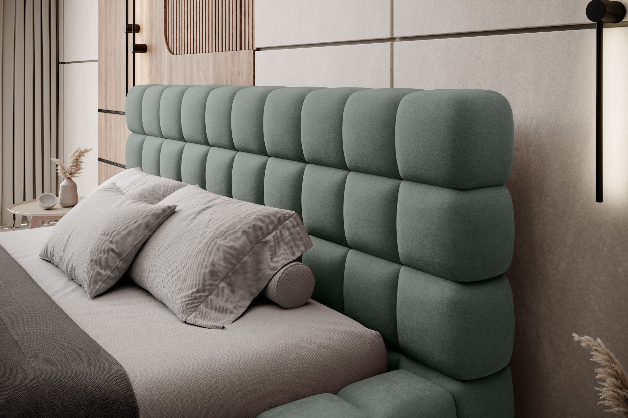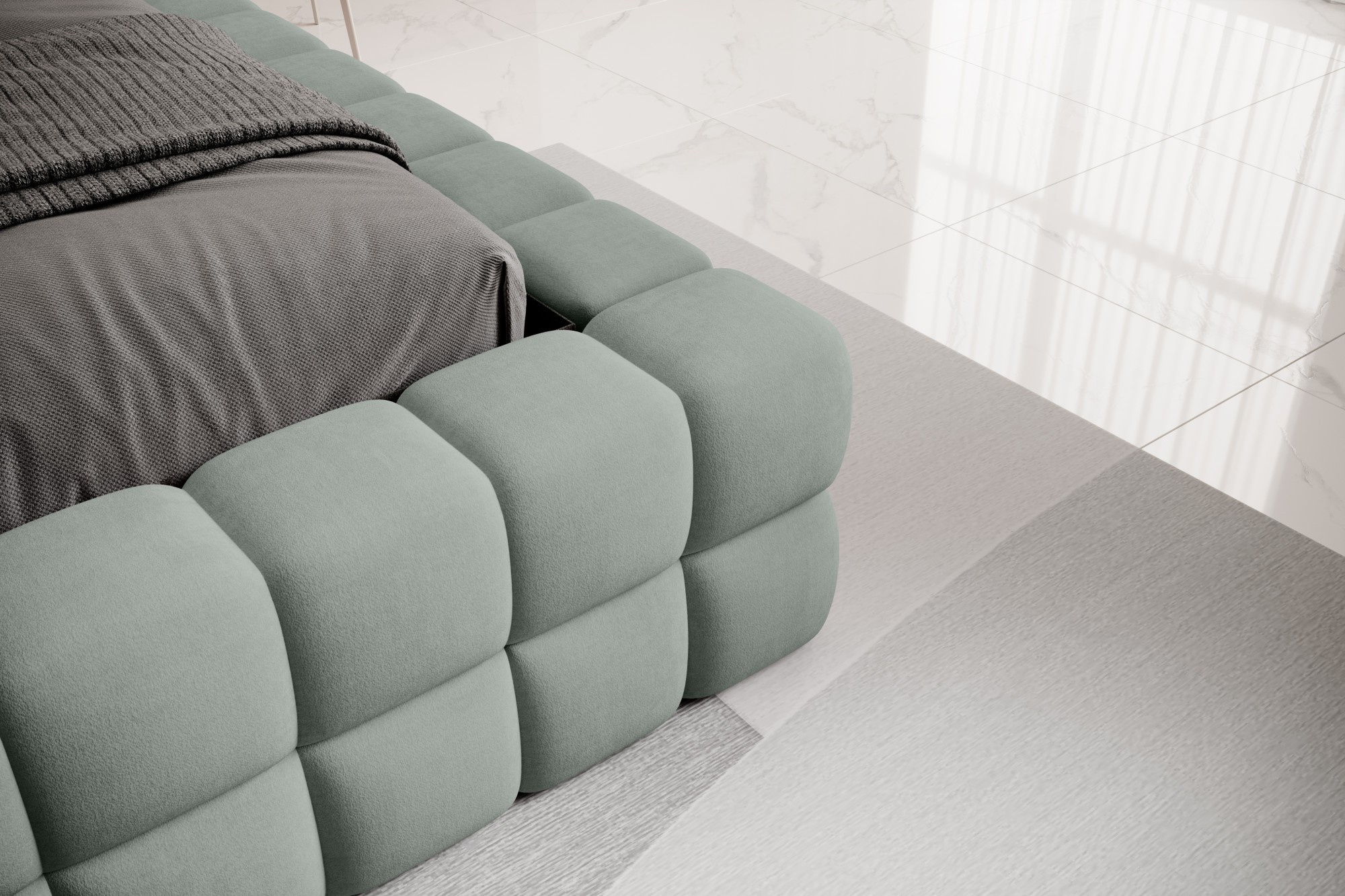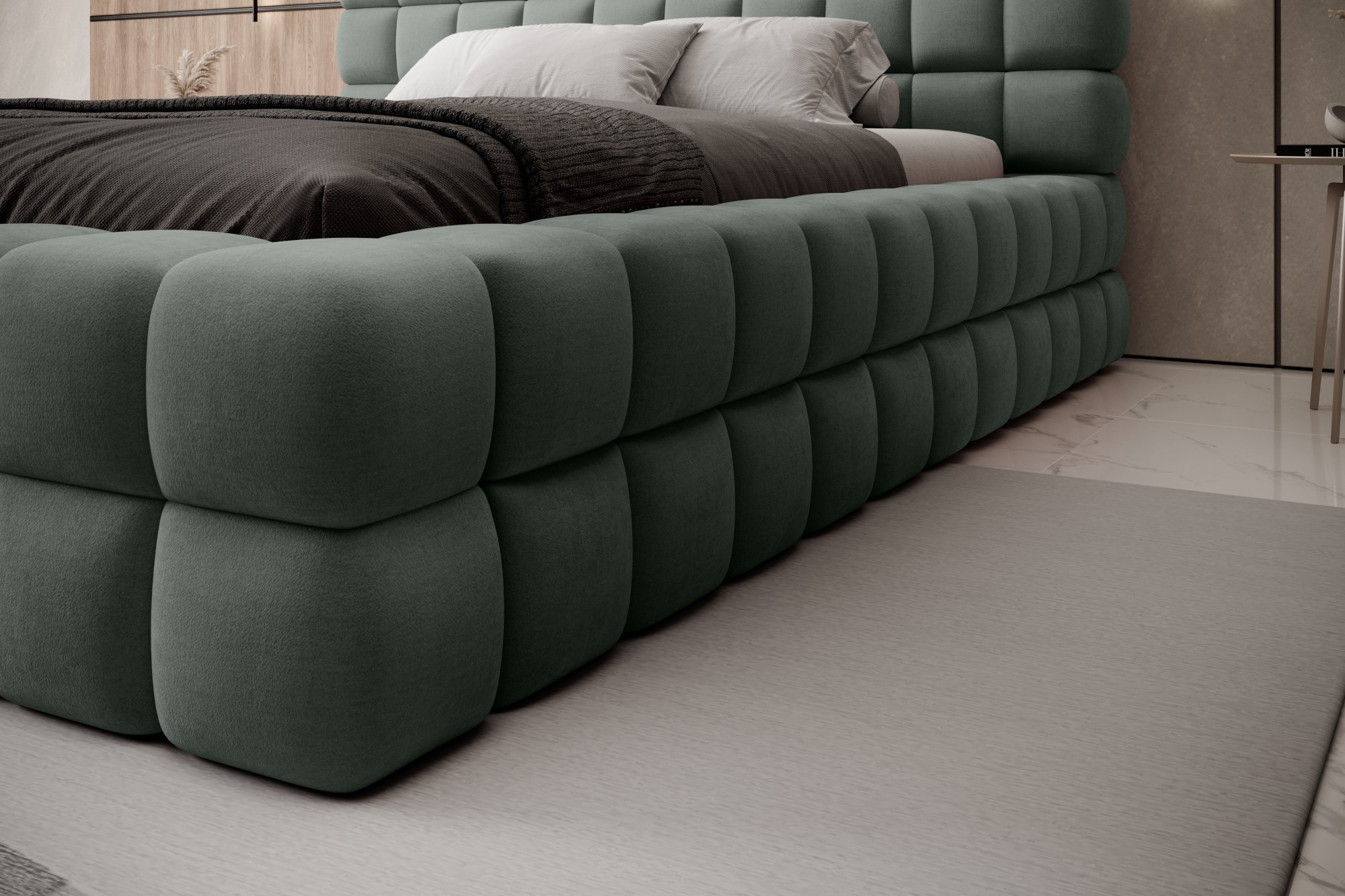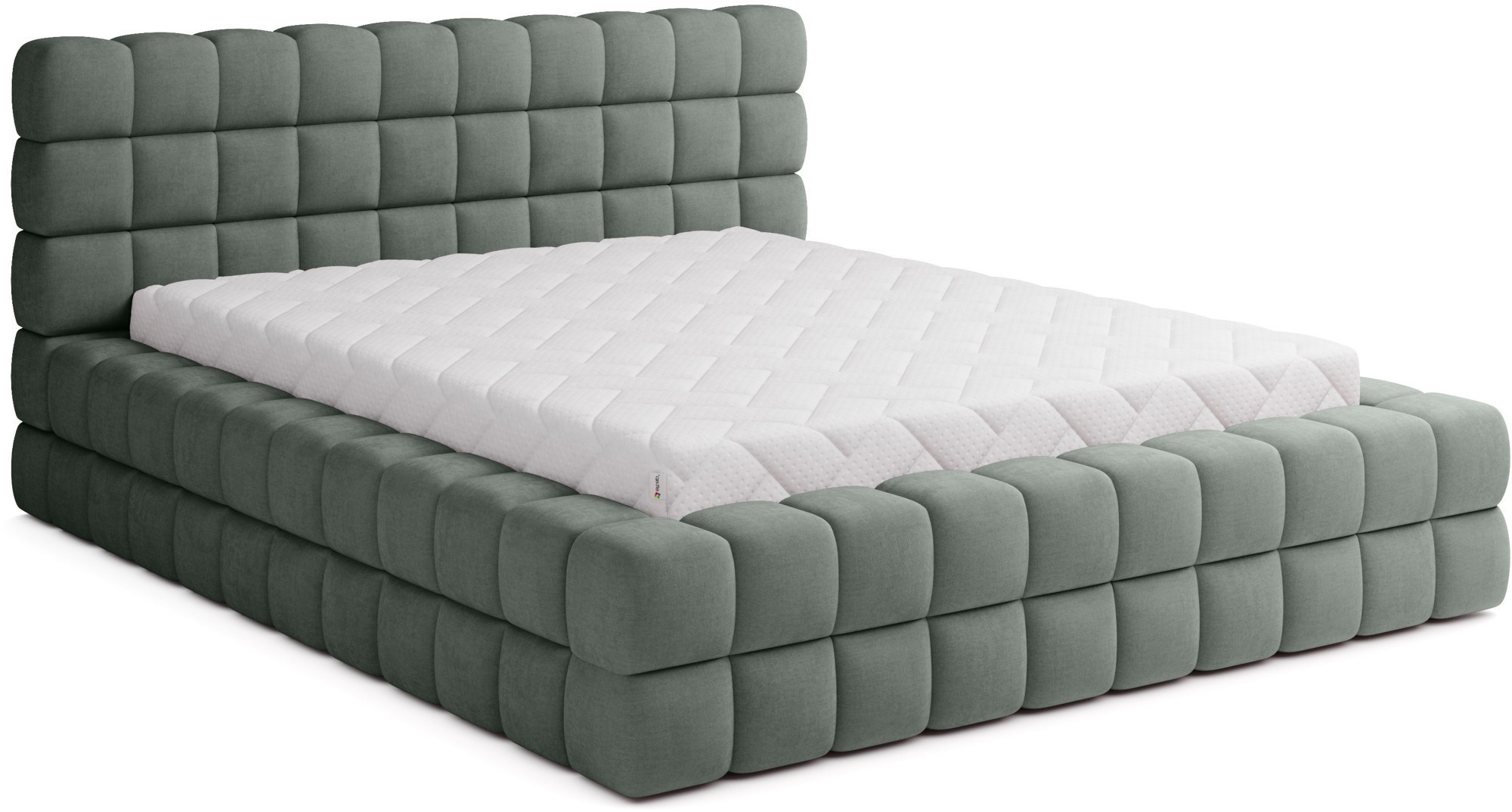 Posteľ Dizzle vo verzii so šírkou 160 cm je ideálnym riešením pre tých, ktorí hľadajú viac priestoru na spanie, bez toho aby museli zľaviť z elegancie a pohodlia. Používa penu T2130, ktorá zabezpečuje pružnosť a jedinečné pohodlie počas spánku. So tromi rôznymi možnosťami šírky je 160 cm ideálnym riešením pre priestranný spánok. Dĺžka postele je 225 cm a jej impozantná výška 104 cm dodáva celej konštrukcii eleganciu.Výška sedadla je 42 cm; odporúča sa však pridať výšku matraca pre dosiahnutie plného komfortu pri spánku. Čierne plastové nohy s výškou 2 cm zabezpečujú stabilitu a ľahký pohyb nábytku. Kovový rám zaručuje odolnosť konštrukcie a jedna úložná priehradka robí posteľ Dizzle praktickým miestom na uloženie ďalších vecí.S 36 lamelami pre rovnomernú podporu matraca prináša posteľ Dizzle, ktorej tvar pripomína elegantnú kocku, do vašej spálne priestranný spánok, štýlový dizajn a pohodlnú relaxáciu.
