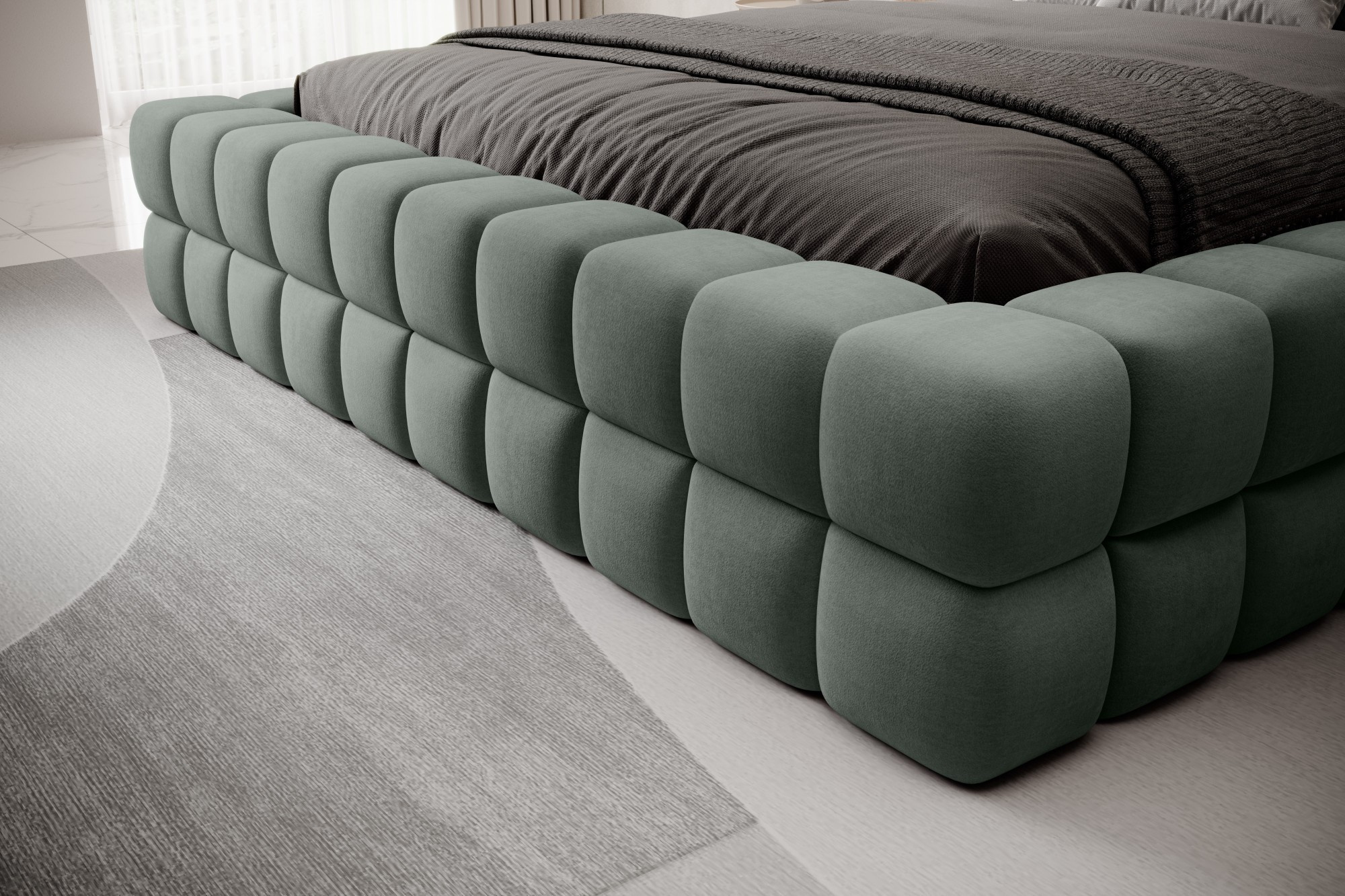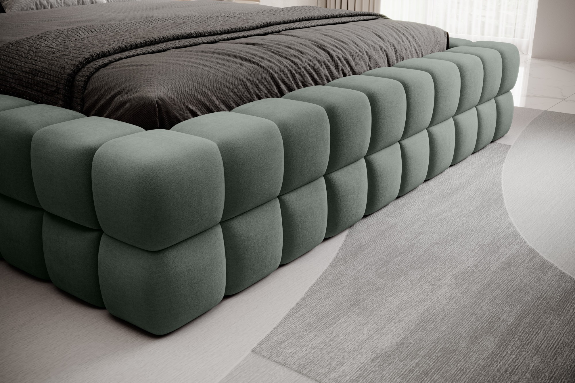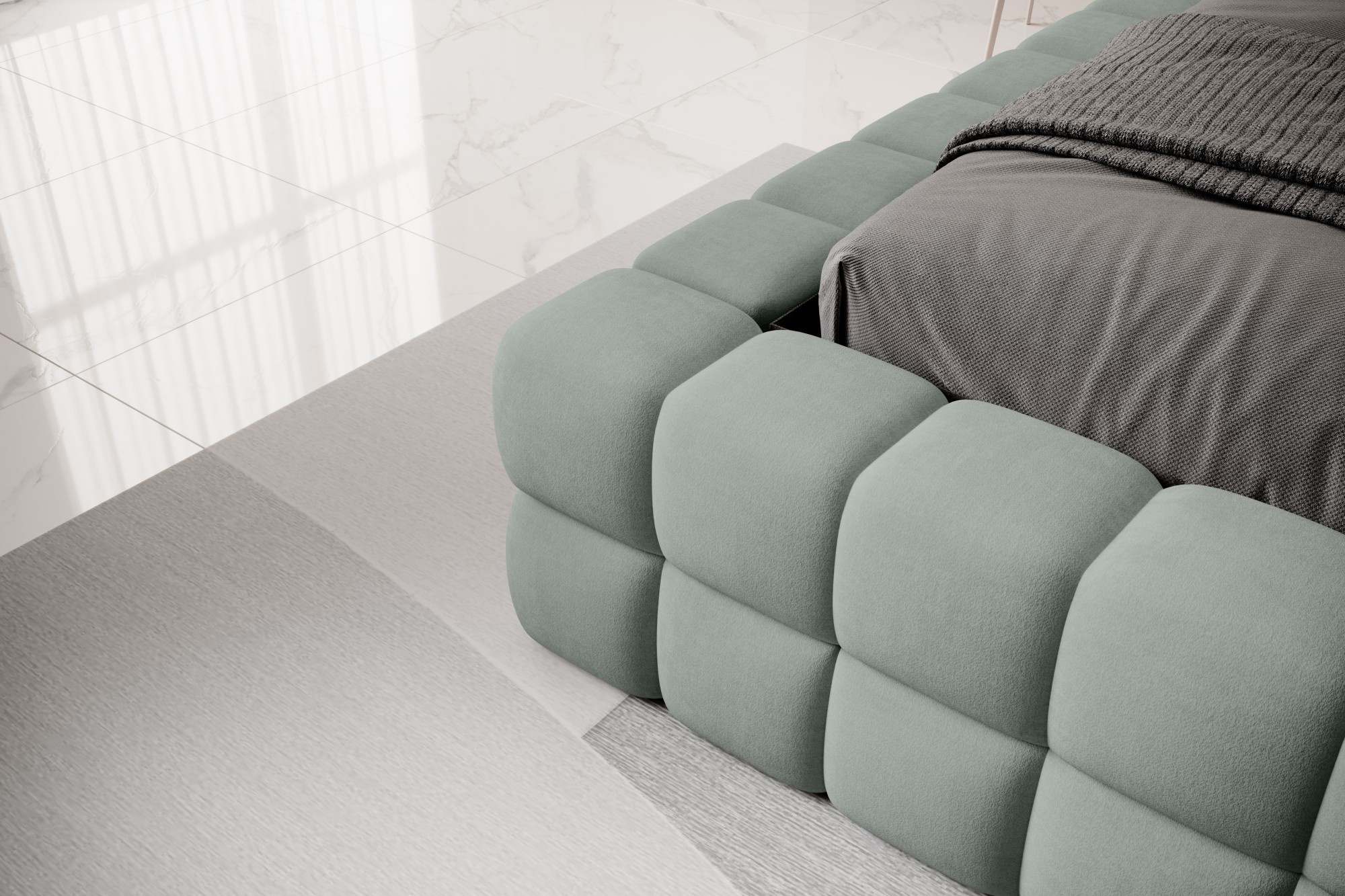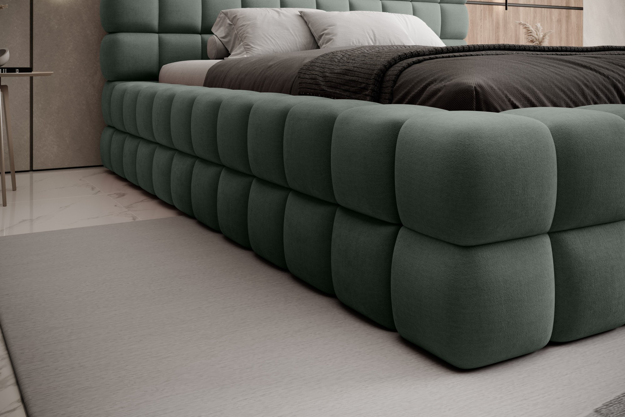 Posteľ Dizzle vo verzii so šírkou 160 cm je ideálnym riešením pre tých, ktorí hľadajú viac priestoru na spanie, bez toho aby museli zľaviť z elegancie a pohodlia. Používa penu T2130, ktorá zabezpečuje pružnosť a jedinečné pohodlie počas spánku. So tromi rôznymi možnosťami šírky je 160 cm ideálnym riešením pre priestranný spánok. Dĺžka postele je 225 cm a jej impozantná výška 104 cm dodáva celej konštrukcii eleganciu.Výška sedadla je 42 cm; odporúča sa však pridať výšku matraca pre dosiahnutie plného komfortu pri spánku. Čierne plastové nohy s výškou 2 cm zabezpečujú stabilitu a ľahký pohyb nábytku. Kovový rám zaručuje odolnosť konštrukcie a jedna úložná priehradka robí posteľ Dizzle praktickým miestom na uloženie ďalších vecí.S 36 lamelami pre rovnomernú podporu matraca prináša posteľ Dizzle, ktorej tvar pripomína elegantnú kocku, do vašej spálne priestranný spánok, štýlový dizajn a pohodlnú relaxáciu.