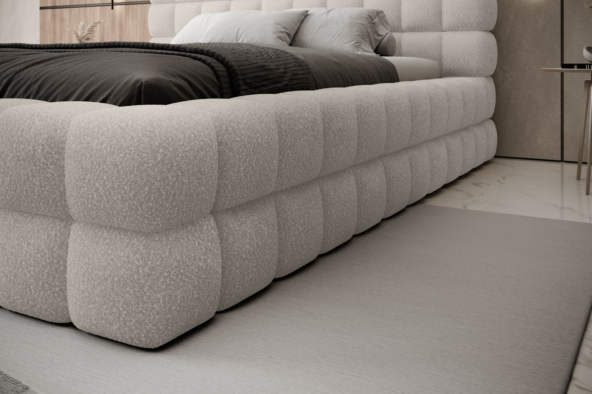 Posteľ Dizzle vo verzii s impozantnou šírkou 180 cm je ideálnym riešením pre tých, ktorí túžia po ešte väčšom priestore na spánok, bez toho aby obetovali eleganciu a pohodlie. Využíva penu T2130, ktorá poskytuje pružnosť a jedinečný spánkový komfort. So tromi rôznymi možnosťami šírky je 180 cm návrhom pre nadšencov priestrannosti. Dĺžka postele je 225 cm a jej impozantná výška 104 cm dodáva celej konštrukcii eleganciu.Výška sedadla je 42 cm; odporúča sa však pridať výšku matraca pre plný komfort pri používaní. Čierne plastové nohy s výškou 2 cm zabezpečujú stabilitu. Kovový rám zaručuje odolnosť konštrukcie a jedna úložná priehradka robí posteľ Dizzle 180 praktickým miestom na uloženie ďalších vecí.S 36 lamelami pre rovnomernú podporu matraca prináša posteľ Dizzle, ktorej tvar pripomína elegantnú kocku, do vašej spálne nielen priestrannosť, ale aj štýlový dizajn a pohodlnú relaxáciu.