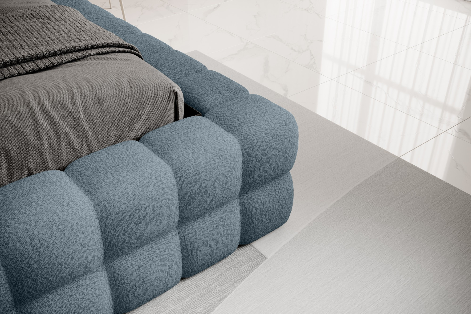 Posteľ Dizzle vo verzii s impozantnou šírkou 180 cm je ideálnym riešením pre tých, ktorí túžia po ešte väčšom priestore na spánok, bez toho aby obetovali eleganciu a pohodlie. Využíva penu T2130, ktorá poskytuje pružnosť a jedinečný spánkový komfort. So tromi rôznymi možnosťami šírky je 180 cm návrhom pre nadšencov priestrannosti. Dĺžka postele je 225 cm a jej impozantná výška 104 cm dodáva celej konštrukcii eleganciu.Výška sedadla je 42 cm; odporúča sa však pridať výšku matraca pre plný komfort pri používaní. Čierne plastové nohy s výškou 2 cm zabezpečujú stabilitu. Kovový rám zaručuje odolnosť konštrukcie a jedna úložná priehradka robí posteľ Dizzle 180 praktickým miestom na uloženie ďalších vecí.S 36 lamelami pre rovnomernú podporu matraca prináša posteľ Dizzle, ktorej tvar pripomína elegantnú kocku, do vašej spálne nielen priestrannosť, ale aj štýlový dizajn a pohodlnú relaxáciu.