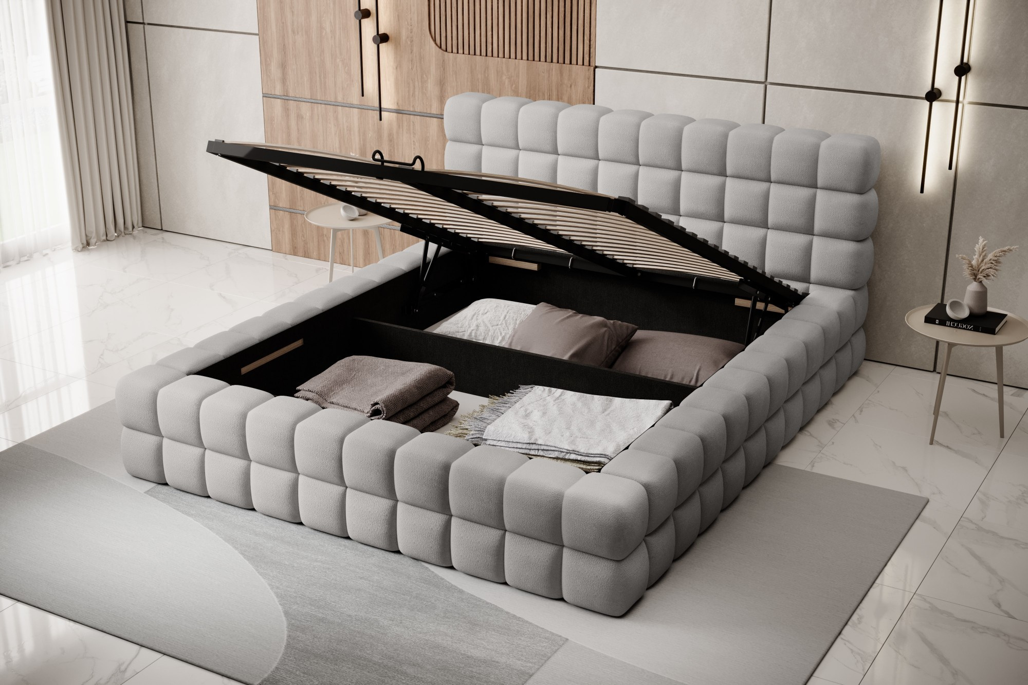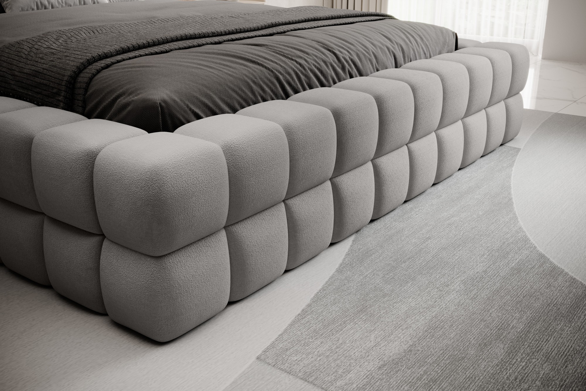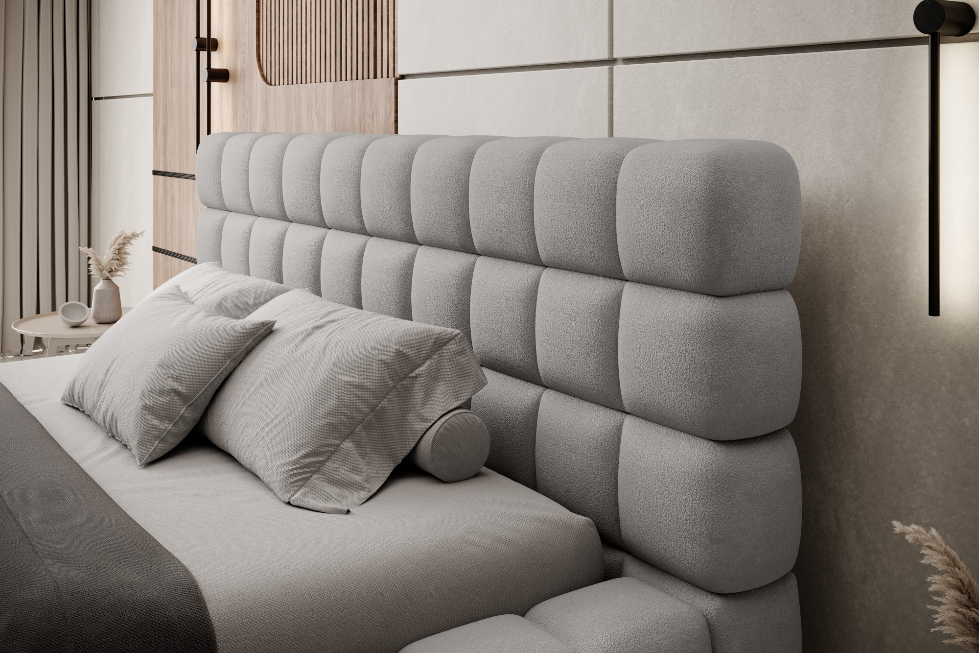 Posteľ Dizzle vo verzii s impozantnou šírkou 180 cm je ideálnym riešením pre tých, ktorí túžia po ešte väčšom priestore na spánok, bez toho aby obetovali eleganciu a pohodlie.