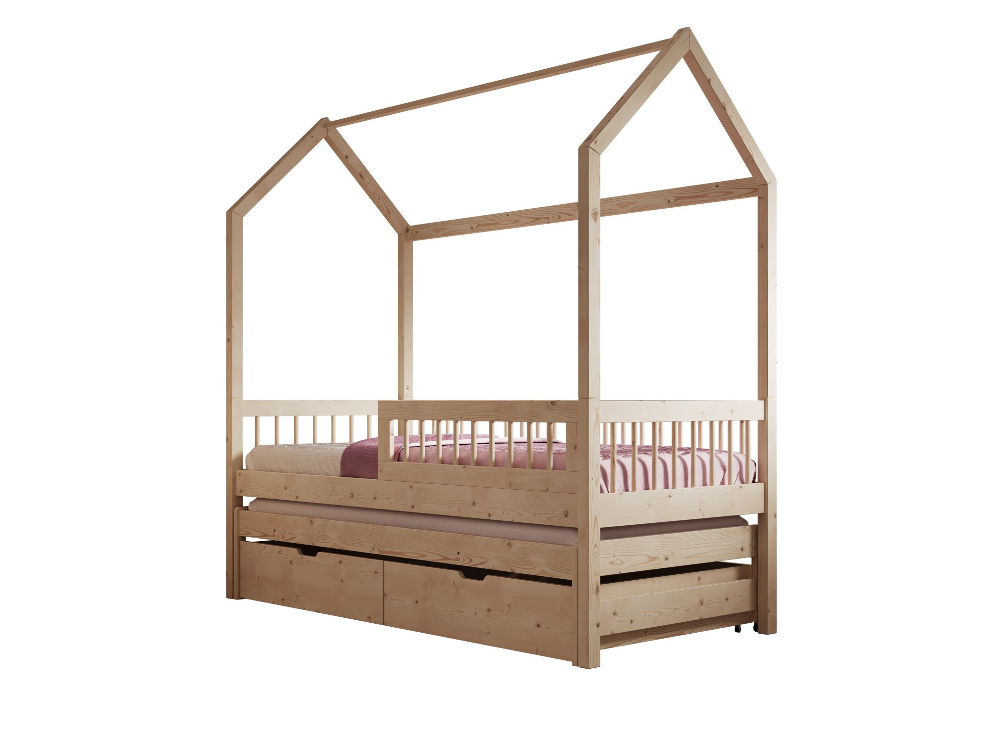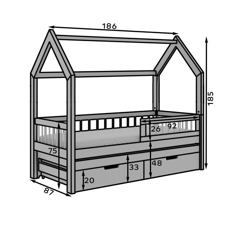 Posteľ Domček Artes II je ideálnym riešením pre tých, ktorí hľadajú ako originálny dizajn, tak praktické riešenia do detskej alebo študentskej izby. Tento model **dvojlôžkovej postele** s výnimočným tvarom domčeka sa ľahko môže stať ústredným bodom každého interiéru. Posteľ bola vybavená **ďalšími zásuvkami na ukladanie**, ktoré pomôžu s organizáciou priestoru, umožňujúc ukladanie posteľnej bielizne, hračiek alebo iných nevyhnutných predmetov. Vďaka tomu bude mať vaše dieťa viac miesta na hranie a učenie. Jednou z najväčších predností postele Artes II je jej **modulárna konštrukcia**. Rám v tvare domčeka možno ľahko rozmontovať, čo umožňuje jeho premenu na klasickejší model postele, prispôsobený meniacim sa potrebám dieťaťa.