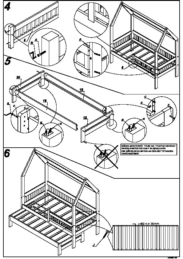 | Materiál | Posteľ vyrobená z borovicového dreva, spojená s laminovanou doskou 18 mm, vložky z dosky s ABS dyhou |