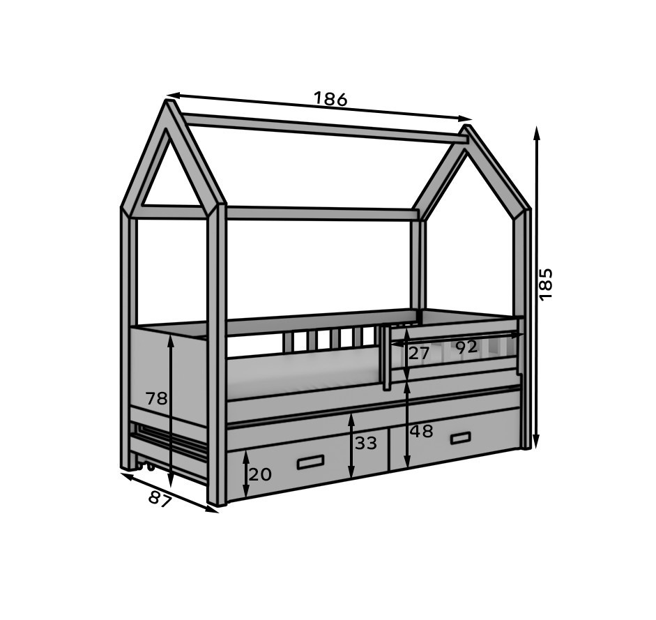 Posteľ Domček Jaspis je ideálnym riešením pre rodiny hľadajúce funkčnosť spojenú s estetikou. Tento elegantný, dvojfarebný nábytok bol navrhnutý s ohľadom na maximálne využitie priestoru a pohodlie pri každodennom používaní. Posteľ sa skladá z dvoch úrovní – hlavného miesta na spanie a výsuvnej časti, ktorá sa skvele hodí ako dodatočný priestor na spanie alebo hranie.Ďalšou výhodou sú priestranné zásuvky umiestnené pod posteľou, ktoré pomôžu s ukladaním posteľnej bielizne, hračiek alebo oblečenia, a zabezpečia tak poriadok v detskej izbe. Solidná konštrukcia z bezpečných materiálov a stabilný rám zabezpečujú pohodlie a bezpečnosť. Posteľ Domček Jaspis je funkčný, štýlový nábytok, ktorý sa dokonale hodí do každého interiéru.Dostupné v rôznych farebných variantoch, umožňuje prispôsobiť sa individuálnym estetickým preferenciám vášho dieťaťa!