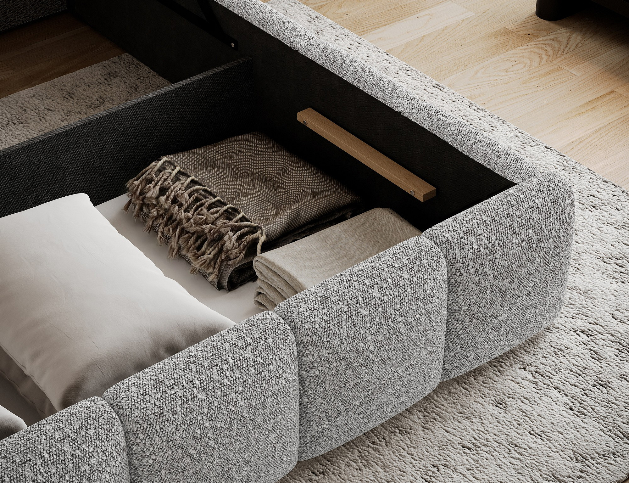 Jednou z hlavných výhod tejto postele je úložný priestor, ktorý je ideálny na uskladnenie posteľnej bielizne, sezónneho oblečenia alebo ďalších potrebných vecí. Tento priestor je ľahko prístupný a pomáha udržiavať vašu spálňu čistú a usporiadanú.