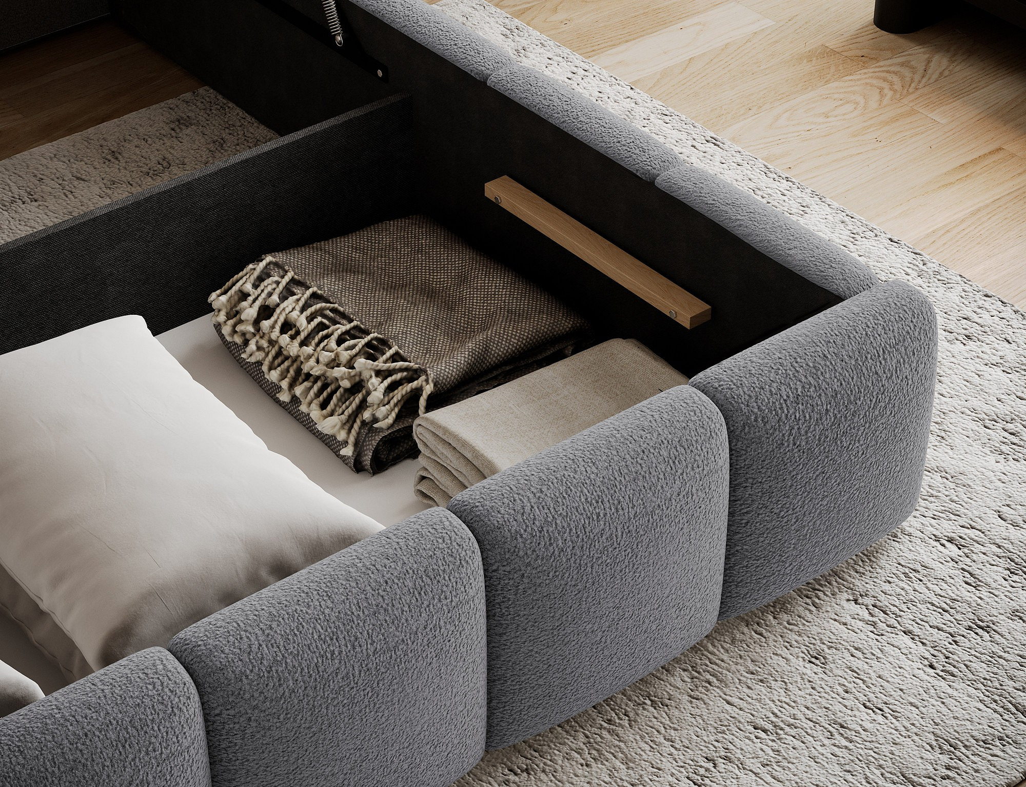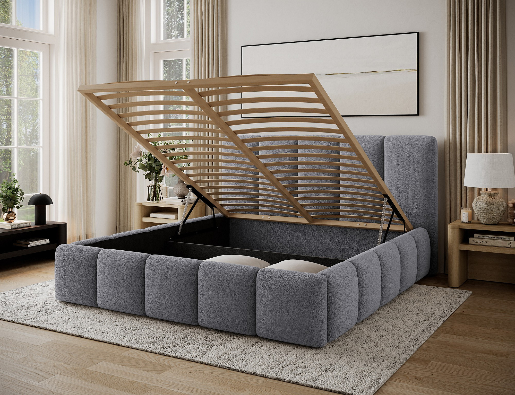 Jednou z hlavných výhod tejto postele je úložný priestor, ktorý je ideálny na uskladnenie posteľnej bielizne, sezónneho oblečenia alebo ďalších potrebných vecí. Tento priestor je ľahko prístupný a pomáha udržiavať vašu spálňu čistú a usporiadanú.