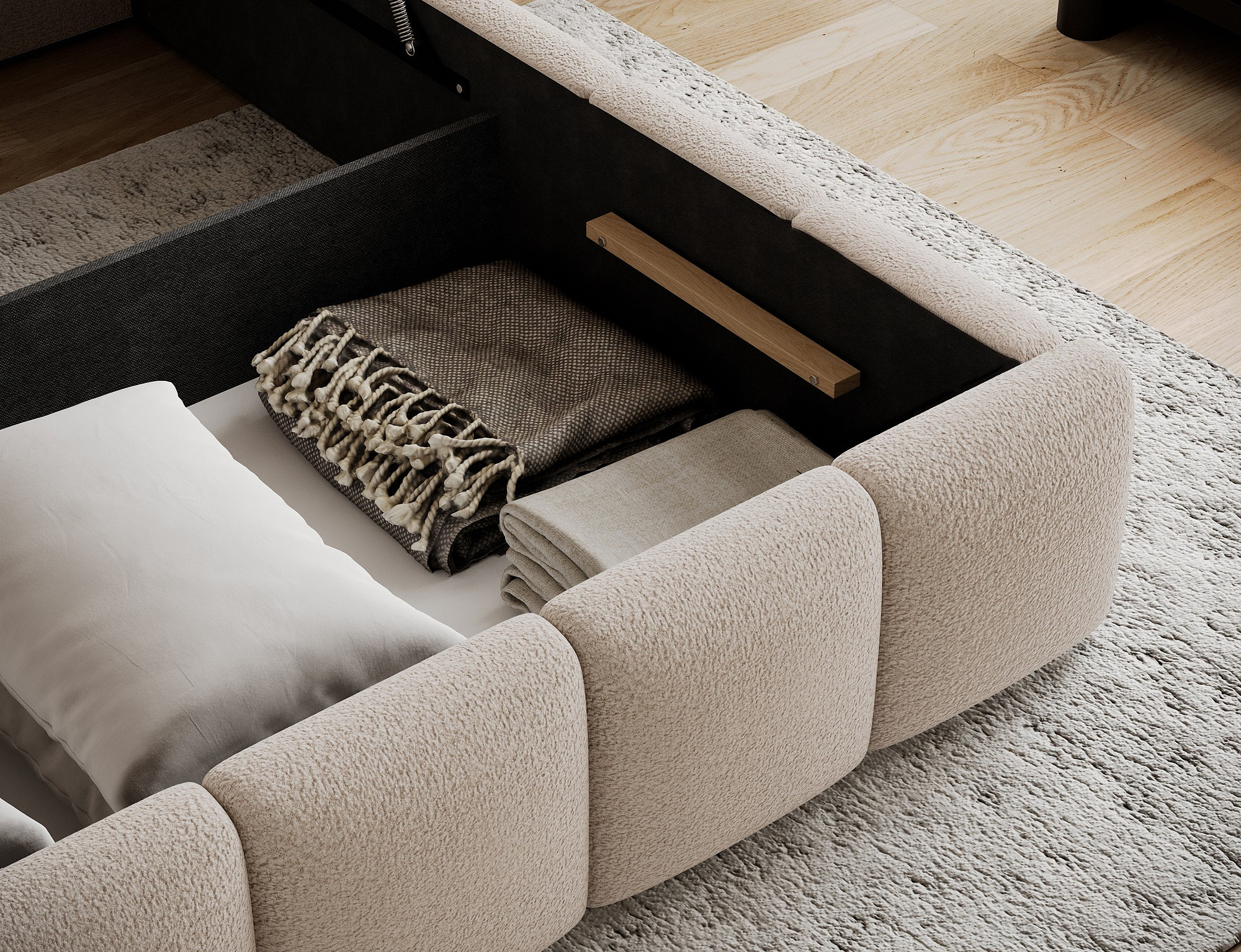 Jednou z hlavných výhod tejto postele je úložný priestor, ktorý je ideálny na uskladnenie posteľnej bielizne, sezónneho oblečenia alebo ďalších potrebných vecí. Tento priestor je ľahko prístupný a pomáha udržiavať vašu spálňu čistú a usporiadanú.