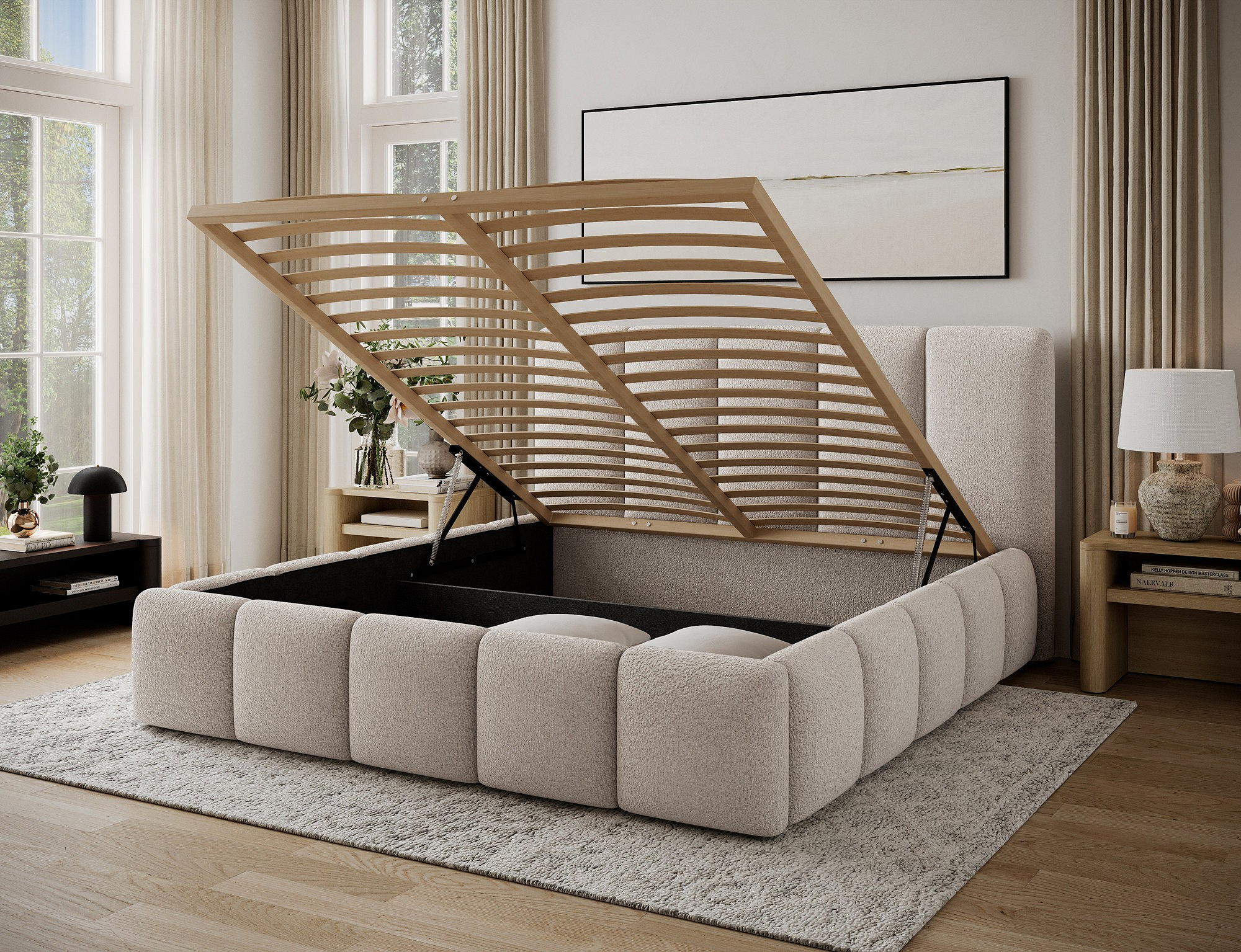 Jednou z hlavných výhod tejto postele je úložný priestor, ktorý je ideálny na uskladnenie posteľnej bielizne, sezónneho oblečenia alebo ďalších potrebných vecí. Tento priestor je ľahko prístupný a pomáha udržiavať vašu spálňu čistú a usporiadanú.