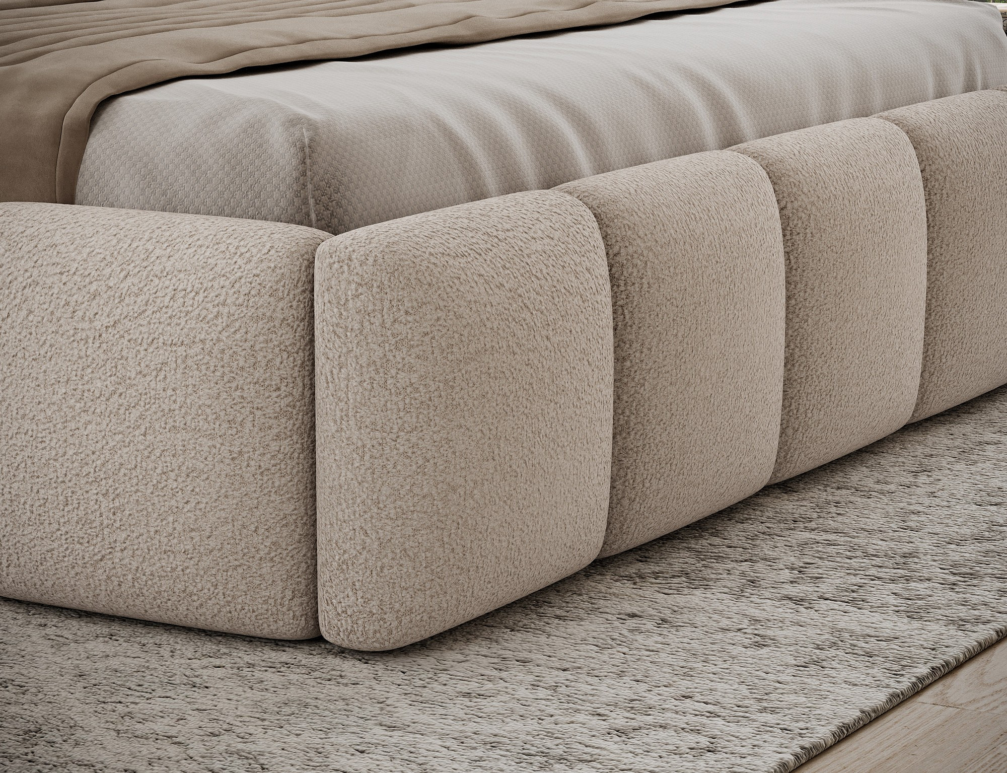 Posteľ je vyrobená z kvalitnej tkaniny a polypropylénu, čo zaisťuje dlhú životnosť a odolnosť. Kostra postele je z pevného dreva, ktoré poskytuje stabilitu a pevnosť. Výplň z polyuretánovej peny T2130 pridáva na komforte a zaisťuje príjemný pocit pri každom ľahnutí.