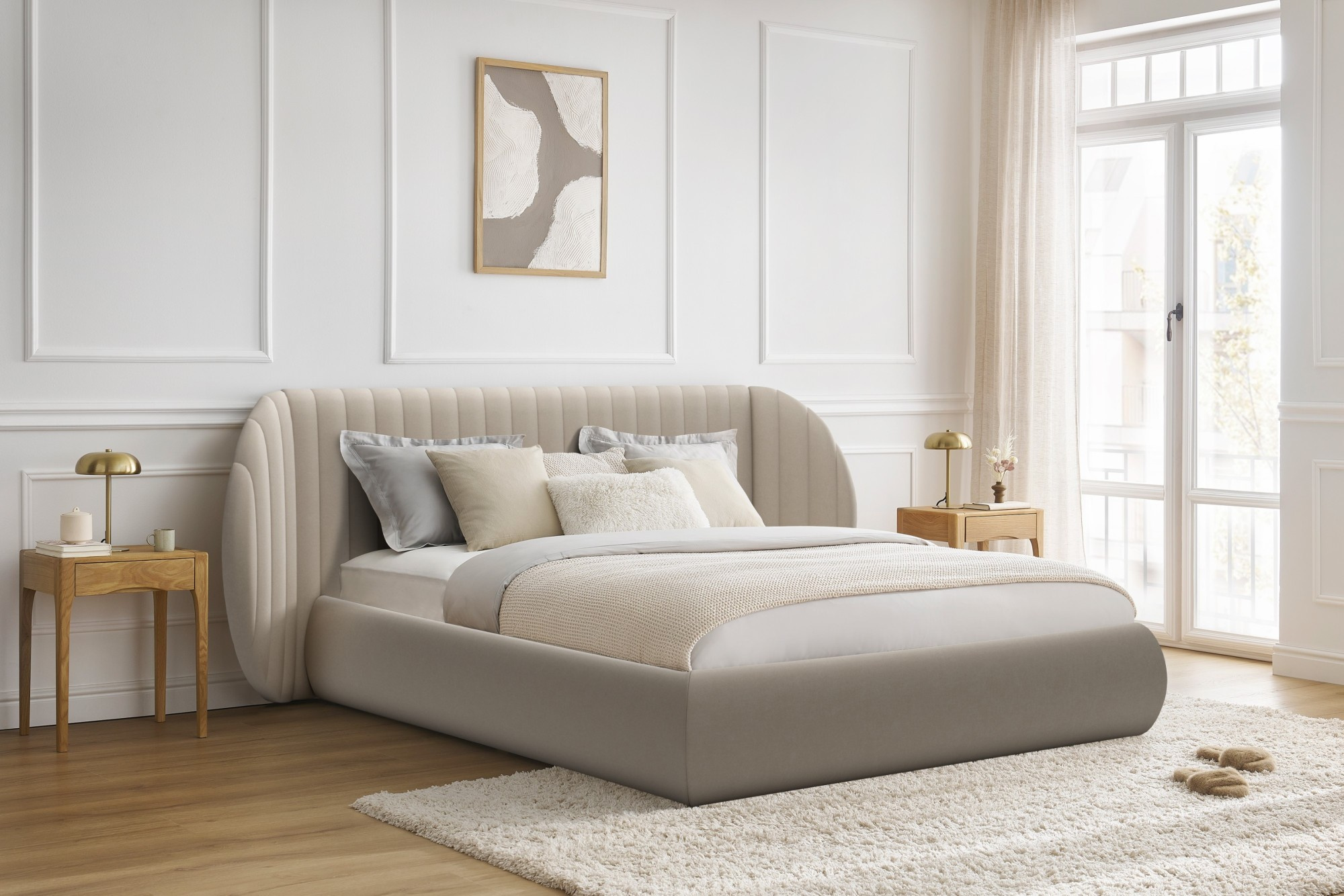 Posteľ Galin s úložným priestorom / 160x200 / Velutto 2, Šírka: 265, Výška: 105, Hĺbka: 216, Výška sedadla: , Výška nožičiek: 2,5, Veľkosť matraca: 160x200, Montáž: