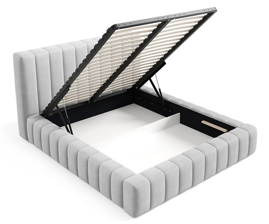 Jednou z hlavných predností tejto postele je jej úložný priestor, ktorý je ideálny na uskladnenie posteľnej bielizne, sezónneho oblečenia alebo ďalších potrebných vecí. Môžete si vybrať medzi dreveným alebo kovovým zdvíhacím rámom, ktorý poskytuje jednoduchý prístup k úložnému priestoru.