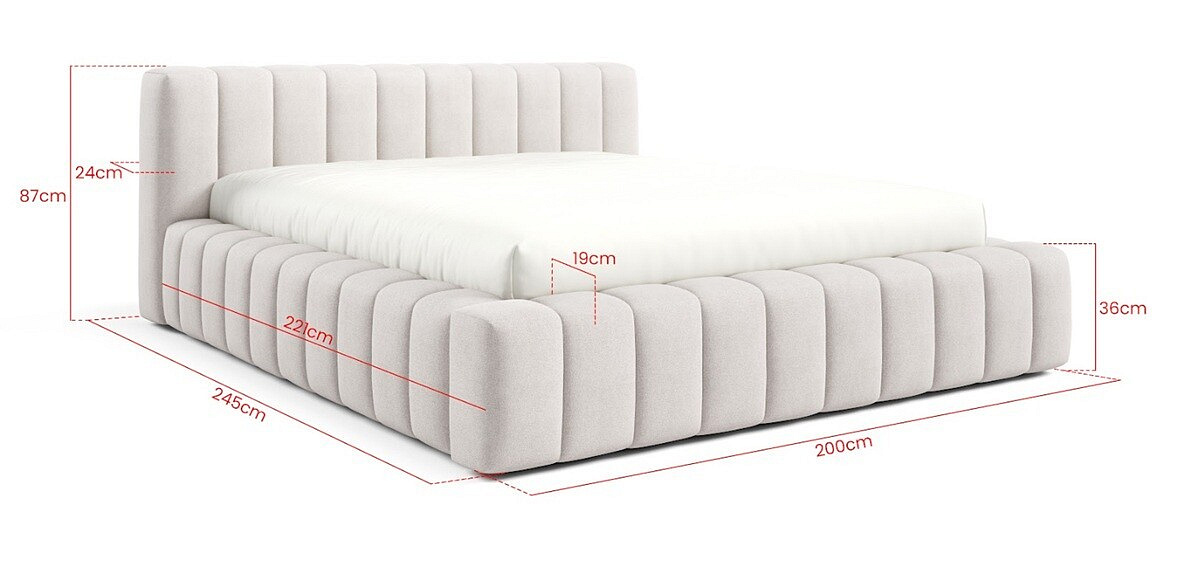 Objavte dokonalú kombináciu elegancie a funkčnosti s posteľou GINO s nízkym čelom, potiahnutou luxusnou látkou. Táto posteľ je navrhnutá tak, aby spĺňala všetky vaše potreby pre pohodlný a štýlový spánok.