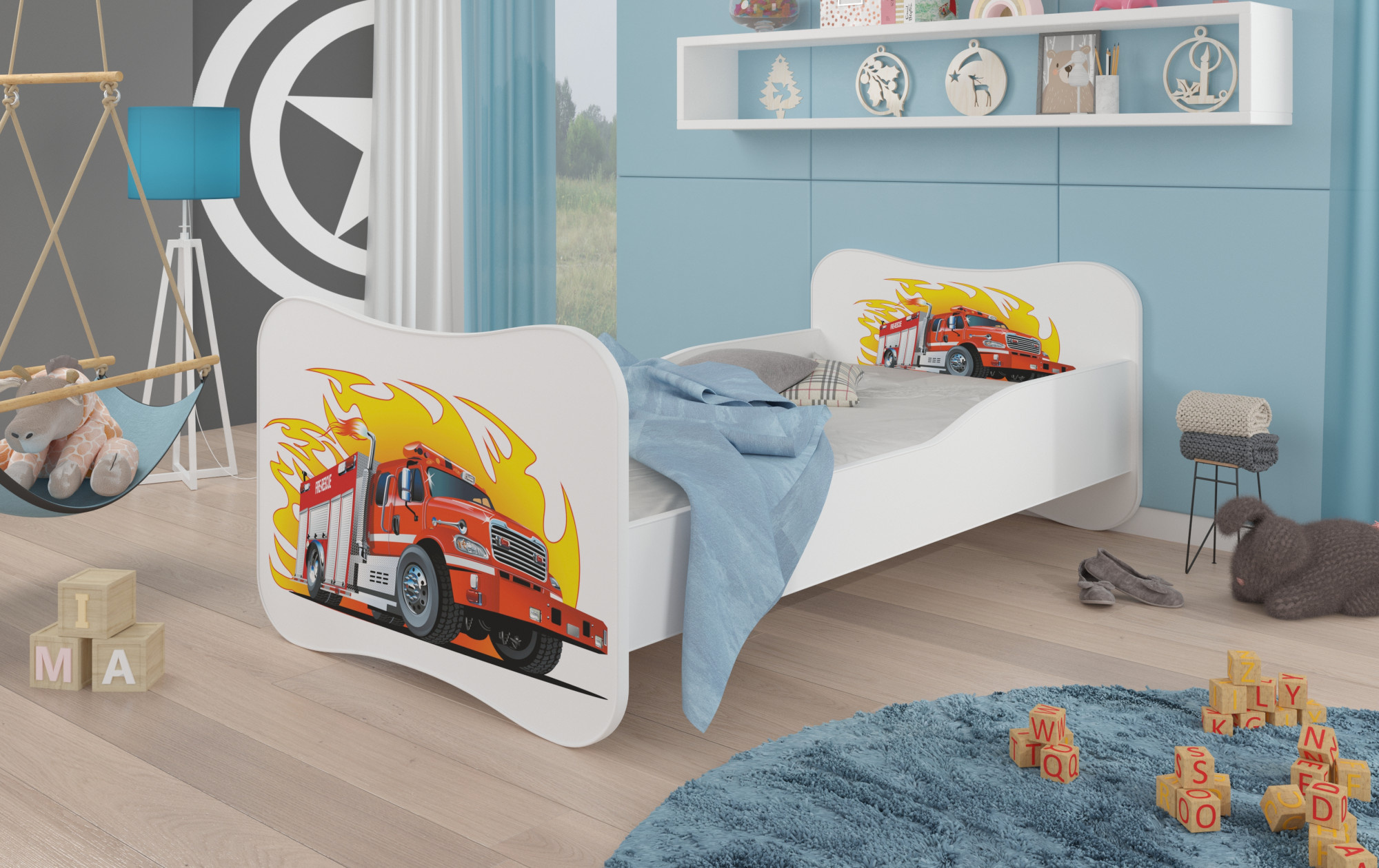 Posteľ GONZALO FIRE TRUCK s matracom 140x70 biela