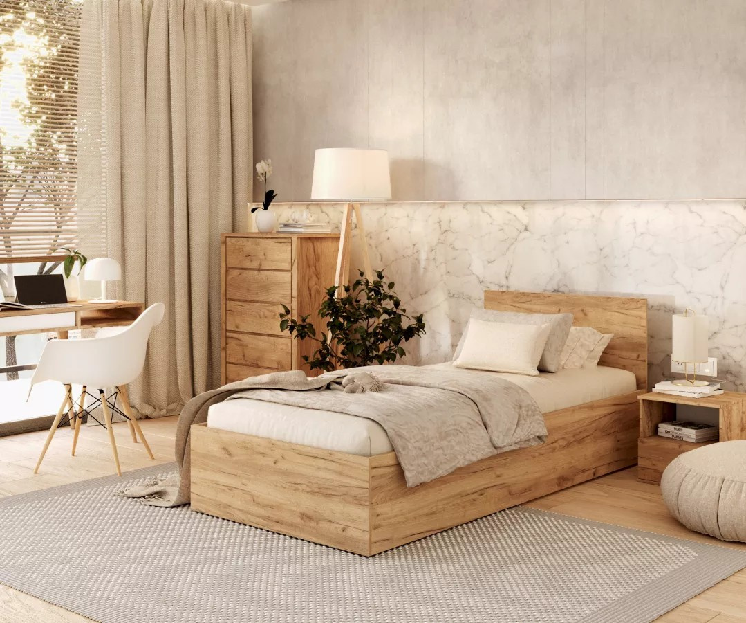 jednolôžková posteľ HAVANA je odolný a pevný kus nábytku inšpirovaný škandinávskym štýlom. Má kovový zdvíhací rám s pružinovými brezovými lamelami. Každá lamela je uložená v plastovej kapse, takže posteľ nevŕzga. Rám je podopretý zdvíhacím mechanizmom s plynovými valcami.
