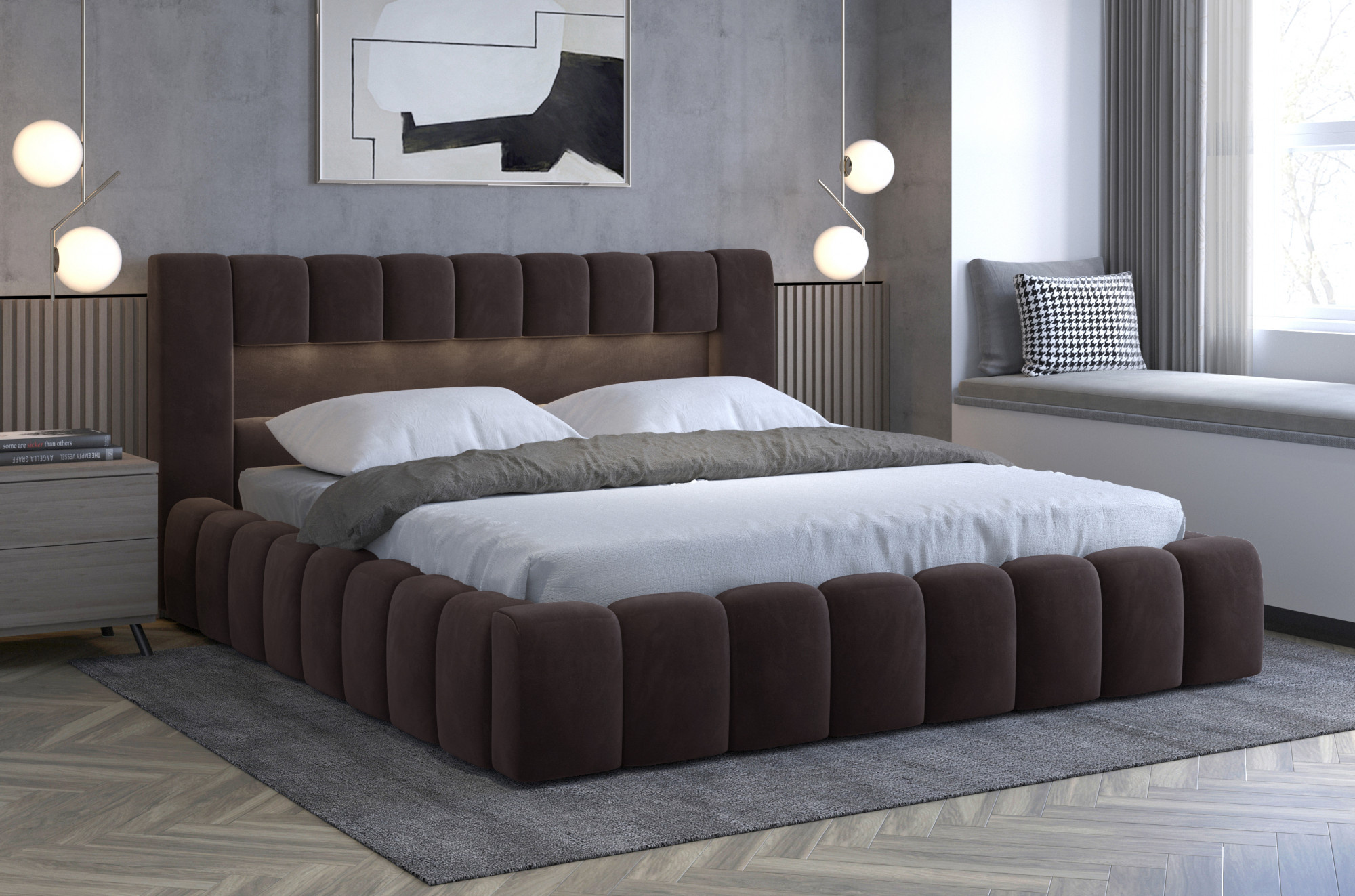 Lamica je veľmi pohodlná, mäkká a originálna posteľ v glamour štýle, ktorá zaujme svojím neobvyklým tvarom a formou. Tento nábytok sa skladá z tela a kovového rámu. Má tiež dva priestranné kontajnery na posteľnú bielizeň. Rozmery spacie plochy - môžete si vybrať z troch verzií - 140/160/180x200 cm - poskytujú dostatočný priestor pre relaxačný odpočinok v spálni rôznych veľkostí, čo bude vyhovovať vašim preferenciám a možnostiam. Naša posteľ sa vyznačuje svojím spracovaním, pretože vysoké čelo a boky postele sú vytvorené s prídavnou penou. Estetický zážitok je umocnený pozdĺžnym, rozsiahlym prešívaním. Široká škála farebných možností uľahčuje zladenie postele s celou miestnosťou. Ďalšou výhodou je opierka hlavy s LED osvetlením, vďaka ktorému bude odpočinok ešte príjemnejší. V tomto prípade ide modernosť a modernistický vzhľad ruka v ruke s eleganciou, vďaka čomu bude Lamica vždy ideálnou voľbou. Určite stojí za to mať.