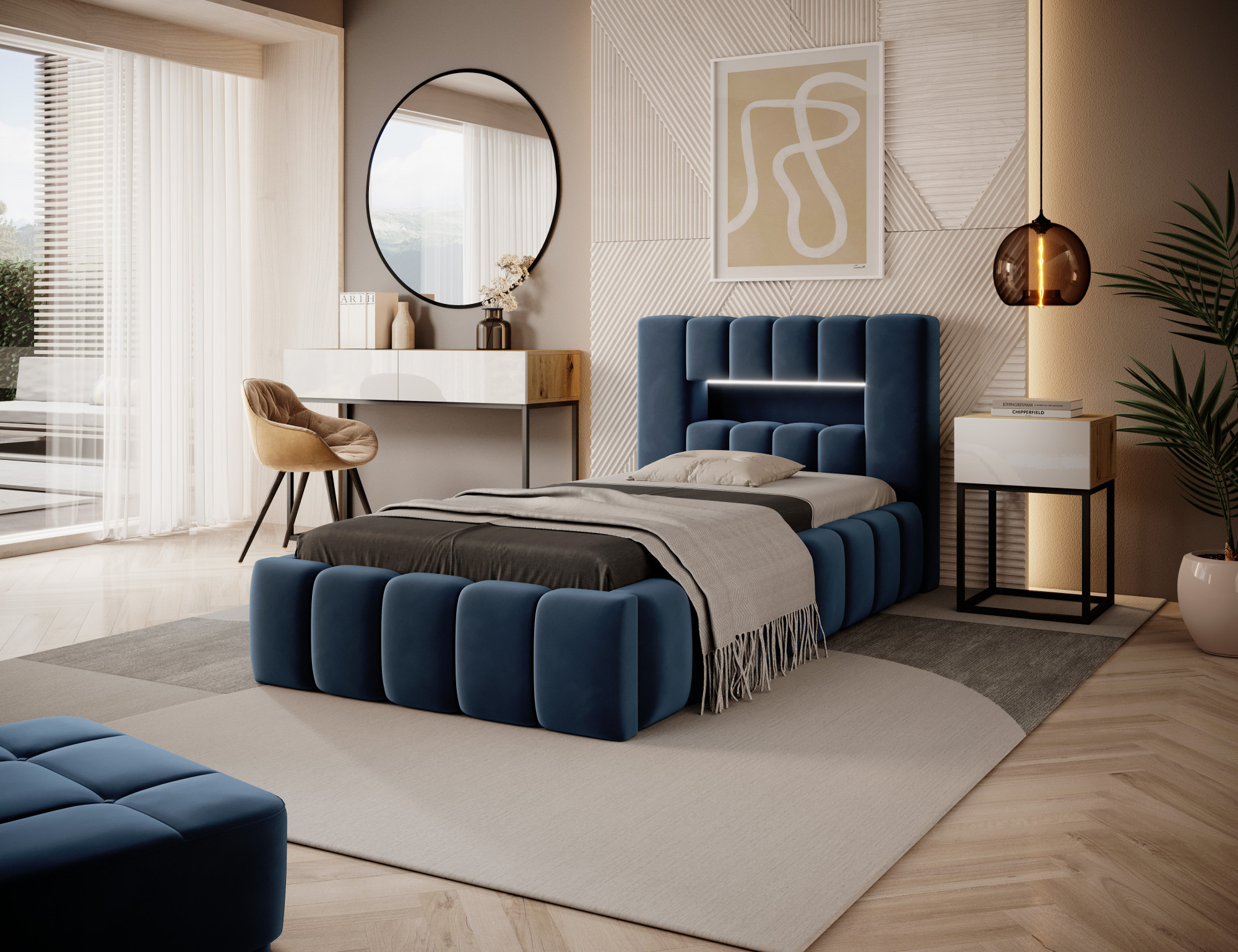 Lamica je veľmi pohodlná, mäkká a originálna posteľ v glamour štýle, ktorá zaujme svojím neobvyklým tvarom a formou. Tento nábytok sa skladá z tela a dreveného rámu. Má tiež úložný priestor na posteľnú bielizeň. Veľkosť spacieho priestoru 90x200 cm poskytuje dostatočný priestor pre relaxačný odpočinok. Naša posteľ sa vyznačuje svojím spracovaním, pretože vysoké čelo a boky postele sú vyrobené z prídavnej peny. Estetický zážitok je umocnený pozdĺžnym, rozsiahlym prešívaním. Široká škála farebných možností uľahčuje zladenie postele s celou miestnosťou. Ďalšou výhodou je opierka hlavy s LED osvetlením, vďaka ktorému bude odpočinok ešte príjemnejší. V tomto prípade ide modernosť a modernistický vzhľad ruka v ruke s eleganciou, vďaka čomu bude Lamica vždy ideálnou voľbou. Určite stojí za to mať.