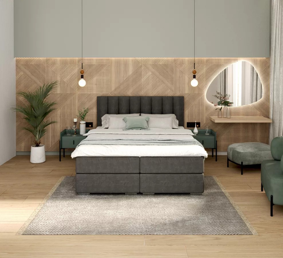 Kontinentálna posteľ LINCOLN Vytvorte si v spálni dokonalú atmosféru s čalúnenou kontinentálnou posteľou LINCOLN. Tento elegantný kus nábytku je dokonalou kombináciou štýlu a pohodlia, ktorá dokonale zapadne do každého interiéru. Čalúnené čelo postele dodáva šik a elegantný nádych a sú to detaily, ktoré posteľ LINCOLN odlišujú od ostatných postelí. Jednoduchý dizajn zaručuje, že harmonicky zapadne do každého interiéru spálne bez ohľadu na jeho štýl.