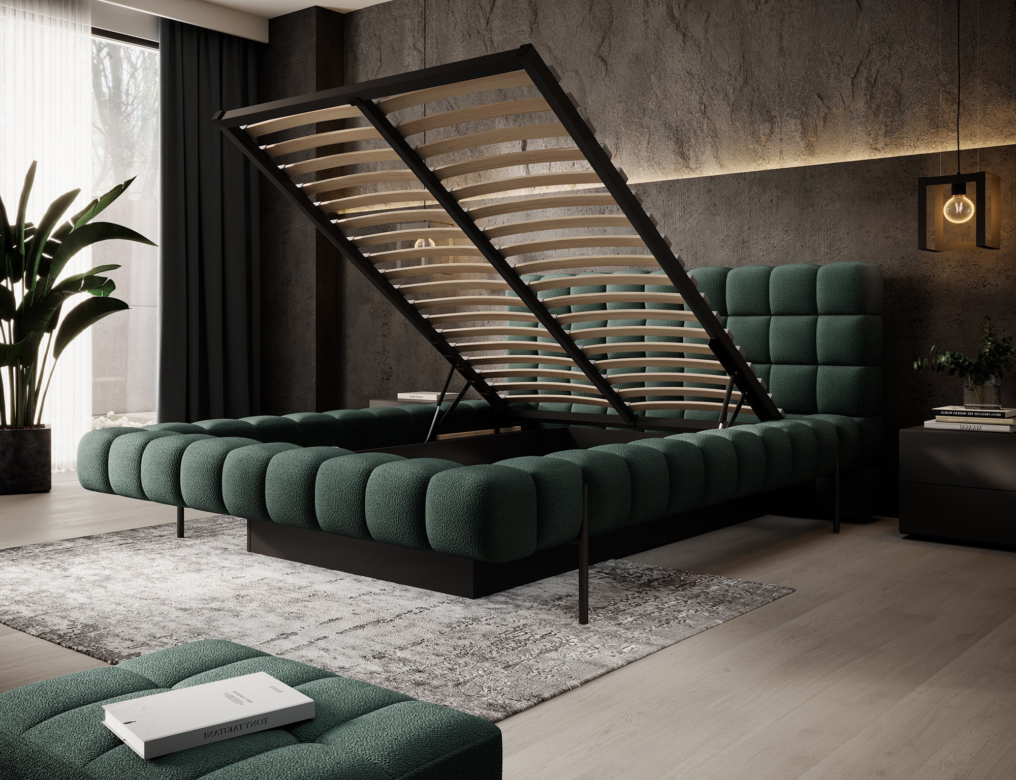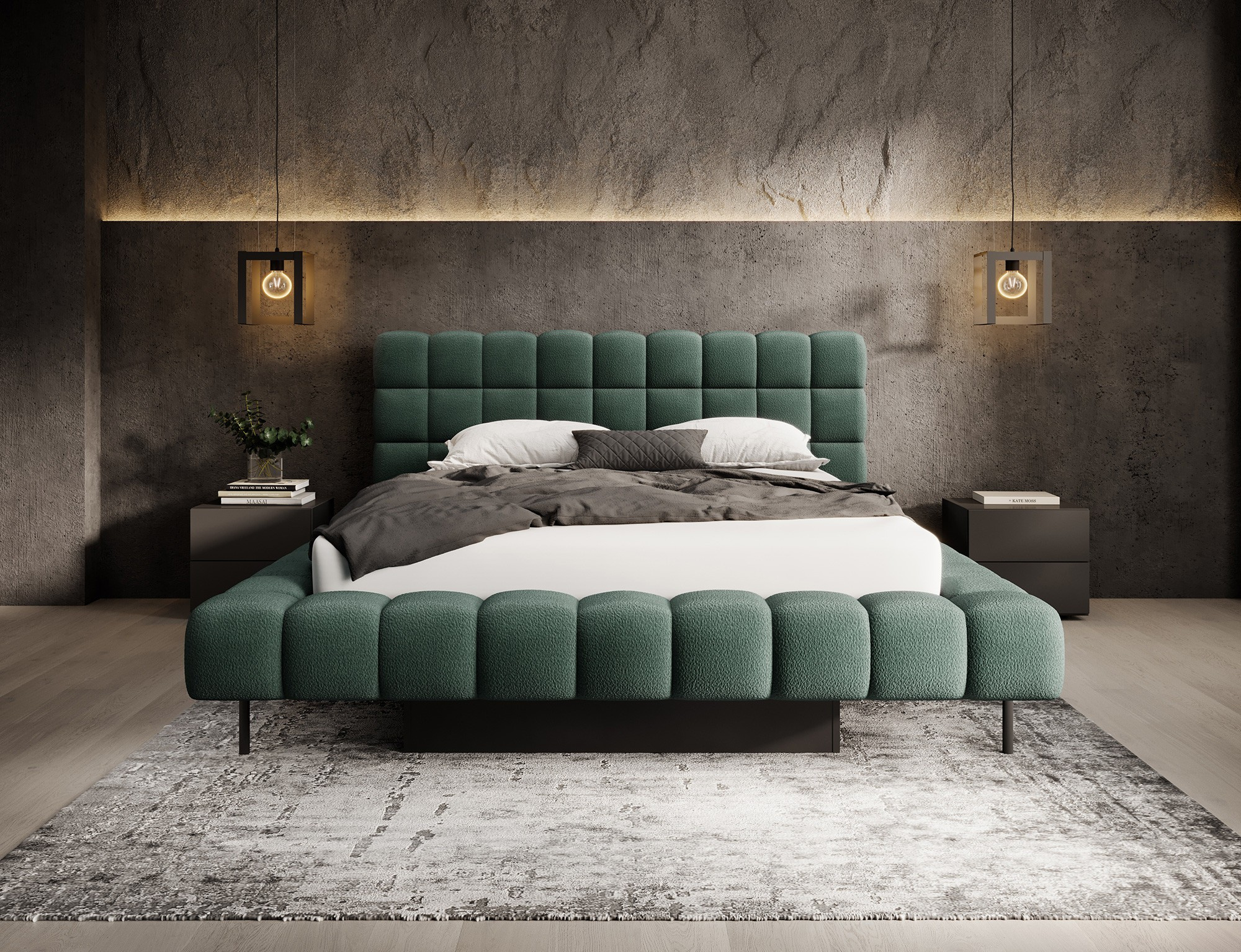 Posteľ Magentta kombinuje moderný dizajn, funkčnosť a výnimočné pohodlie. Jeho čalúnené operadlo dodáva nádych elegancie a útulnosti, čo z neho robí dokonalý stredobod každej spálne. Robustný rám a čelo postele sú vyplnené vysoko kvalitnou penou T2130, ktorá poskytuje vynikajúcu oporu a pohodlie, či už spíte alebo odpočívate. Dostupné v troch veľkostiach: 140 cm, 160 cm, 180 cm, hodí sa do rôznych priestorov a spĺňa osobné preferencie.Kovový rám obsahuje 36 lamiel, ktoré rovnomerne rozkladajú váhu matraca, čím zvyšujú jeho odolnosť a poskytujú vynikajúcu oporu. Čierna kovová noha zabezpečuje stabilný základ a zároveň zdôrazňuje elegantný, minimalistický dizajn. Praktický úložný priestor pre posteľnú bielizeň ponúka efektívne riešenie pre organizáciu prikrývok, vankúšov a ďalších lôžkovín, čím optimalizuje priestor vo vašej spálni. Posteľ Magentta je ideálnou voľbou pre tých, ktorí si cenia modernú estetiku, pohodlie a praktickosť.