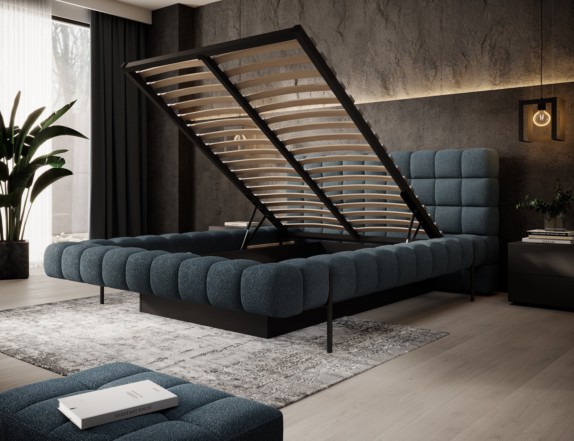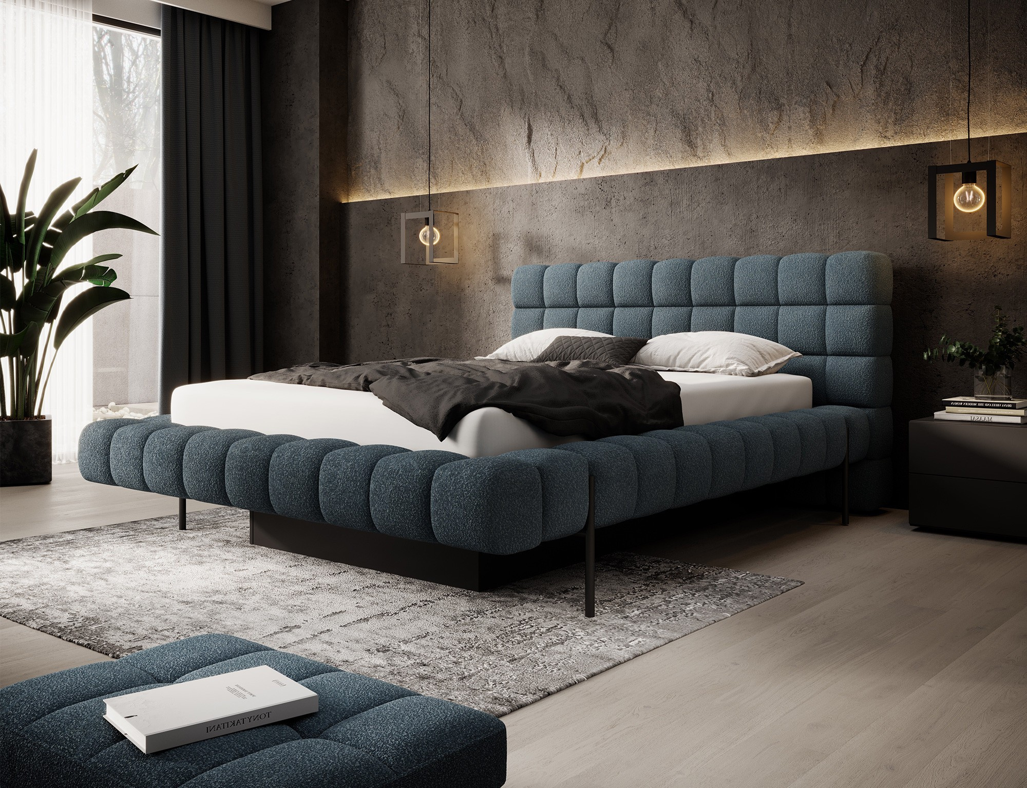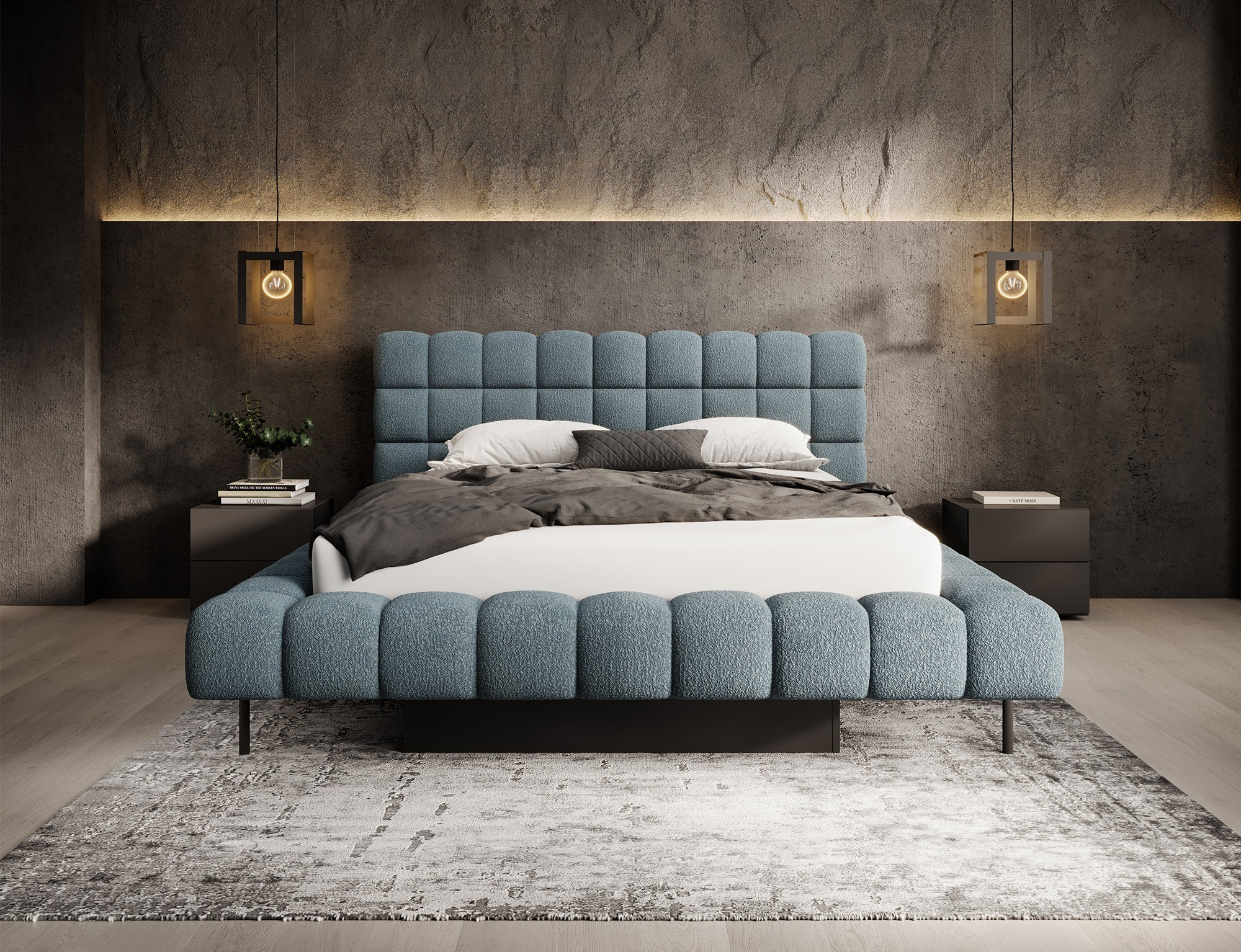 Posteľ Magentta kombinuje moderný dizajn, funkčnosť a výnimočné pohodlie. Jeho čalúnené operadlo dodáva nádych elegancie a útulnosti, čo z neho robí dokonalý stredobod každej spálne. Robustný rám a čelo postele sú vyplnené vysoko kvalitnou penou T2130, ktorá poskytuje vynikajúcu oporu a pohodlie, či už spíte alebo odpočívate. Dostupné v troch veľkostiach: 140 cm, 160 cm, 180 cm, hodí sa do rôznych priestorov a spĺňa osobné preferencie.Kovový rám obsahuje 36 lamiel, ktoré rovnomerne rozkladajú váhu matraca, čím zvyšujú jeho odolnosť a poskytujú vynikajúcu oporu. Čierna kovová noha zabezpečuje stabilný základ a zároveň zdôrazňuje elegantný, minimalistický dizajn. Praktický úložný priestor pre posteľnú bielizeň ponúka efektívne riešenie pre organizáciu prikrývok, vankúšov a ďalších lôžkovín, čím optimalizuje priestor vo vašej spálni. Posteľ Magentta je ideálnou voľbou pre tých, ktorí si cenia modernú estetiku, pohodlie a praktickosť.