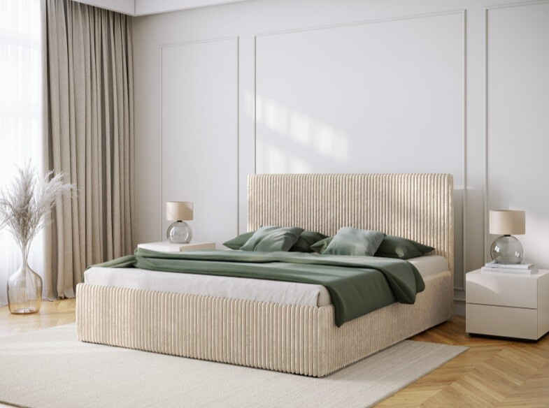 Posteľje čalúnená kvalitnou poťahovou látkou, ktorá je nielen príjemná na dotyk, ale aj jednoduchá na údržbu. Tento materiál zaručuje odolnosť a jednoduchú údržbu, takže je ideálny na každodenné používanie.