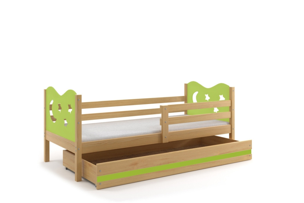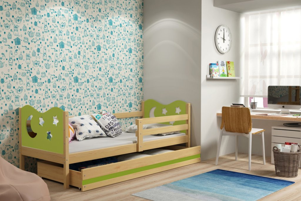 Posteľ Miky 80x190 borovica/zelená
