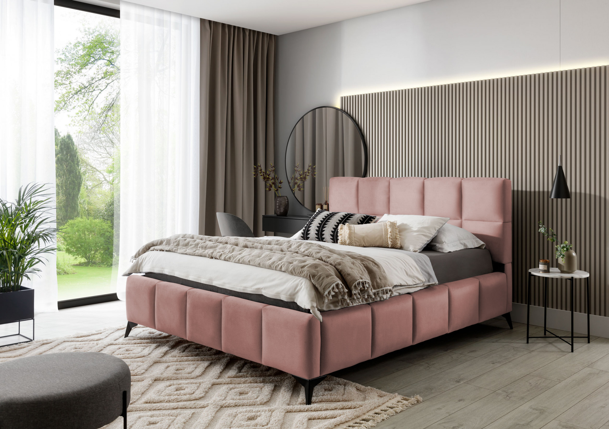 Posteľ Mist je kombináciou moderného dizajnu a glamour štýlu, ktorá prináša nádych elegancie do každej spálne. Opierka hlavy má mäkkú penovú výplň potiahnutú vysoko kvalitným čalúnením. Prešívanie, ktoré zdobí posteľ Mist, pridáva štýl a charakter a prináša nádych modernosti.Nábytok je k dispozícii v troch šírkach spacie plochy: 140, 160, 180 x 200 centimetrov. To uľahčuje prispôsobenie postele podmienkam v byte. Čierne oceľové nohy s dĺžkou až 13.5 centimetrov vytvára dojem, že posteľ sa vznáša nad zemou, čo ďalej opticky zväčšuje miestnosť, v ktorej bude posteľ Mist umiestnená. Okrem toho je nábytok tiež vybavený úložným priestorom na posteľnú bielizeň, čo je veľmi dobré riešenie pre malé priestory a umožňuje udržiavať spálňu upratanú.