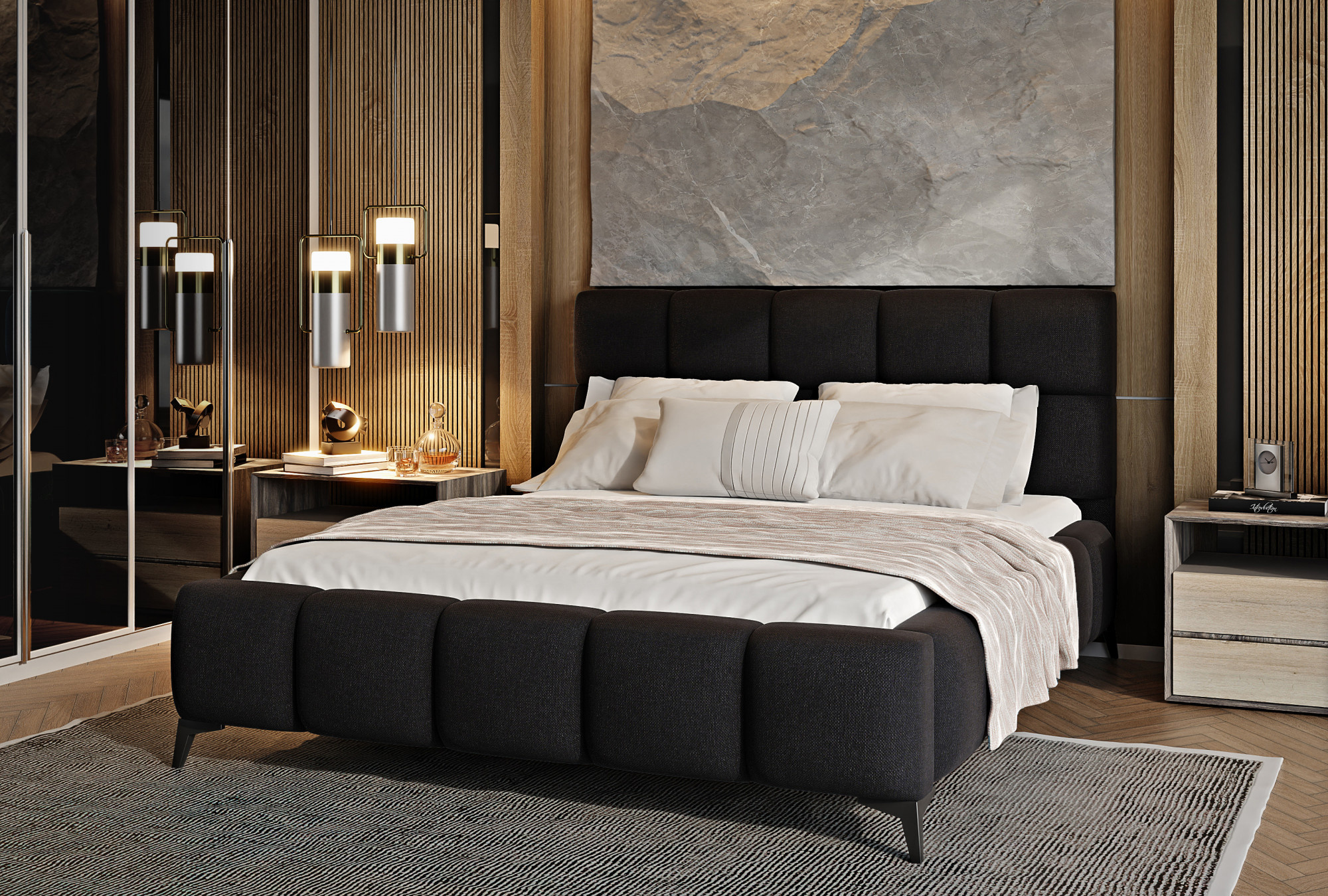 Posteľ Mist je kombináciou moderného dizajnu a glamour štýlu, ktorá prináša nádych elegancie do každej spálne. Opierka hlavy má mäkkú penovú výplň potiahnutú vysoko kvalitným čalúnením. Prešívanie, ktoré zdobí posteľ Mist, pridáva štýl a charakter a prináša nádych modernosti.Nábytok je k dispozícii v troch šírkach spacie plochy: 140, 160, 180 x 200 centimetrov. To uľahčuje prispôsobenie postele podmienkam v byte. Čierne oceľové nohy s dĺžkou až 13.5 centimetrov vytvára dojem, že posteľ sa vznáša nad zemou, čo ďalej opticky zväčšuje miestnosť, v ktorej bude posteľ Mist umiestnená. Okrem toho je nábytok tiež vybavený úložným priestorom na posteľnú bielizeň, čo je veľmi dobré riešenie pre malé priestory a umožňuje udržiavať spálňu upratanú.