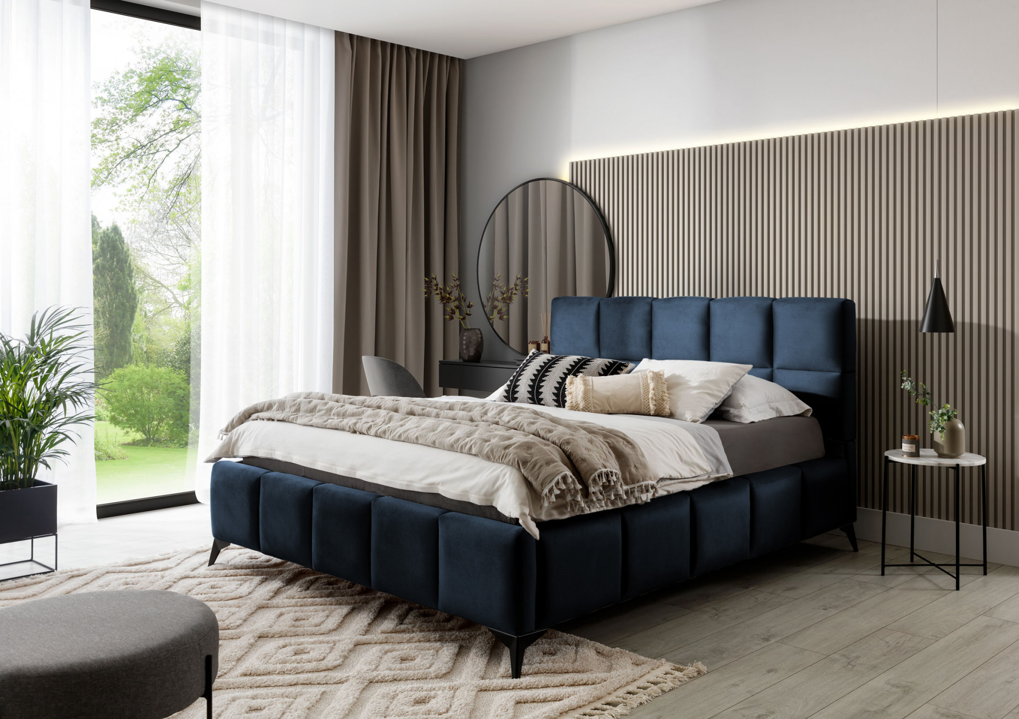 Posteľ Mist je kombináciou moderného dizajnu a glamour štýlu, ktorá prináša nádych elegancie do každej spálne. Opierka hlavy má mäkkú penovú výplň potiahnutú vysoko kvalitným čalúnením. Prešívanie, ktoré zdobí posteľ Mist, pridáva štýl a charakter a prináša nádych modernosti.Nábytok je k dispozícii v troch šírkach spacie plochy: 140, 160, 180 x 200 centimetrov. To uľahčuje prispôsobenie postele podmienkam v byte. Čierne oceľové nohy s dĺžkou až 13.5 centimetrov vytvára dojem, že posteľ sa vznáša nad zemou, čo ďalej opticky zväčšuje miestnosť, v ktorej bude posteľ Mist umiestnená. Okrem toho je nábytok tiež vybavený úložným priestorom na posteľnú bielizeň, čo je veľmi dobré riešenie pre malé priestory a umožňuje udržiavať spálňu upratanú.